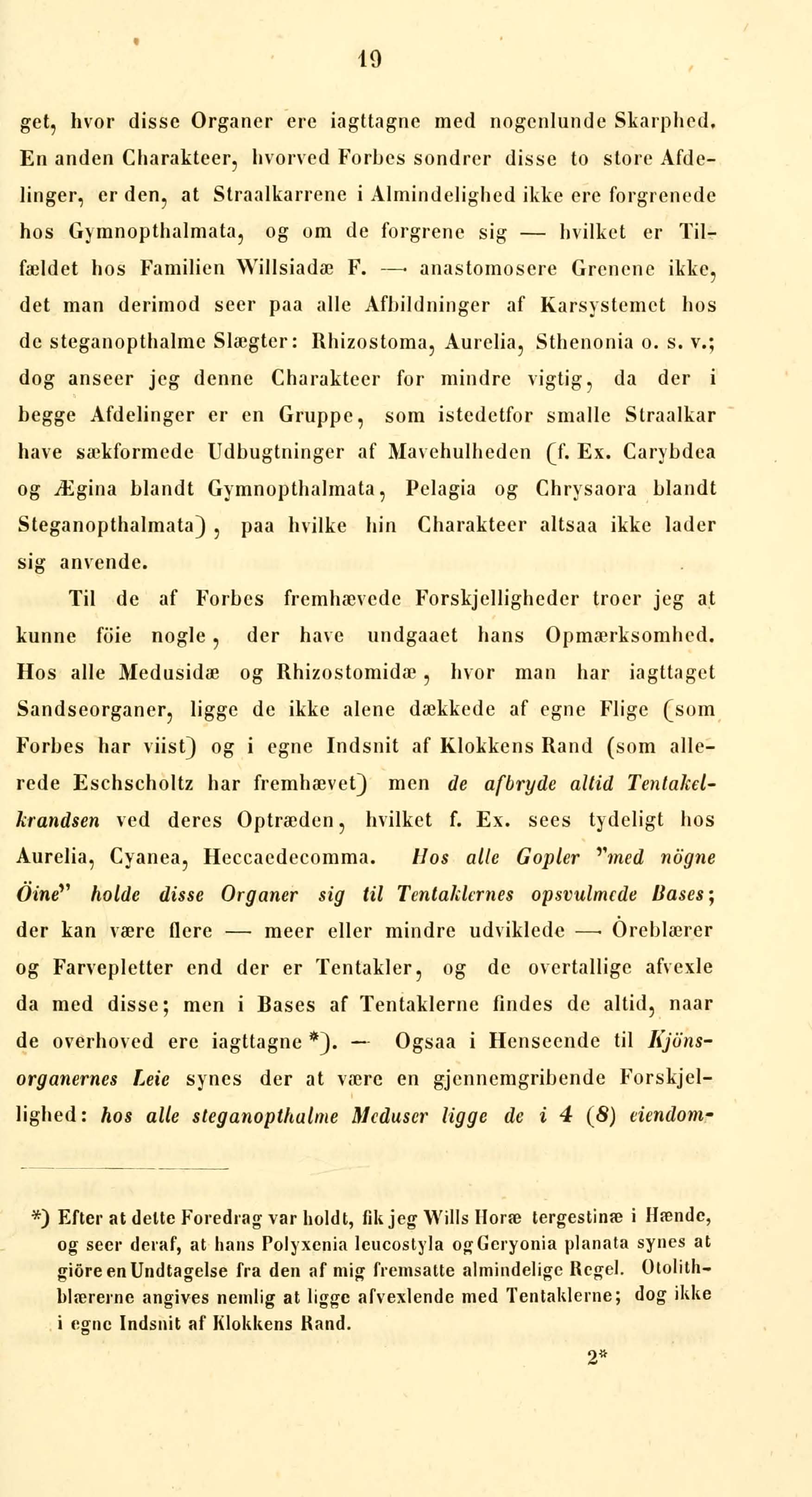 og Ægina blandt Gymnopthalmata, Pelagia og Chrysaora blandt