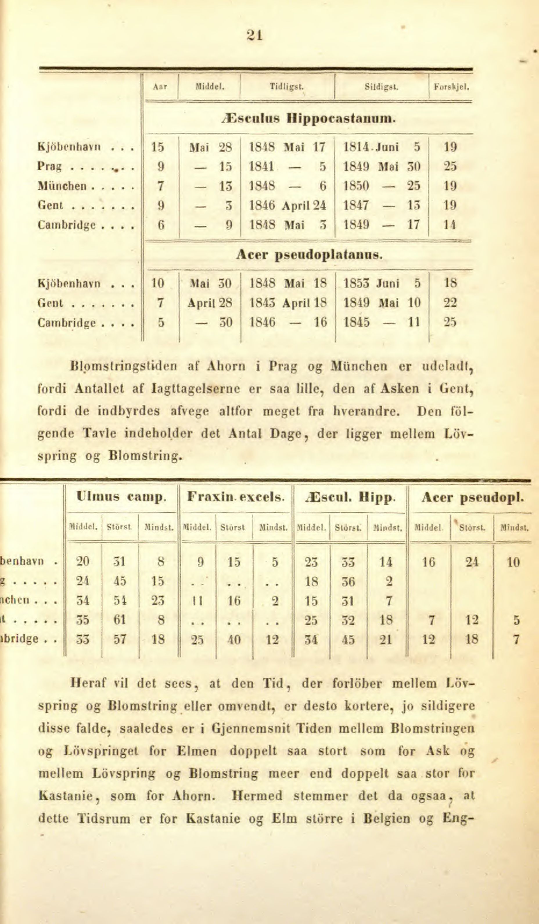 dette Tidsrum er for Kastanie og Elm storre i Belgien og Eng-