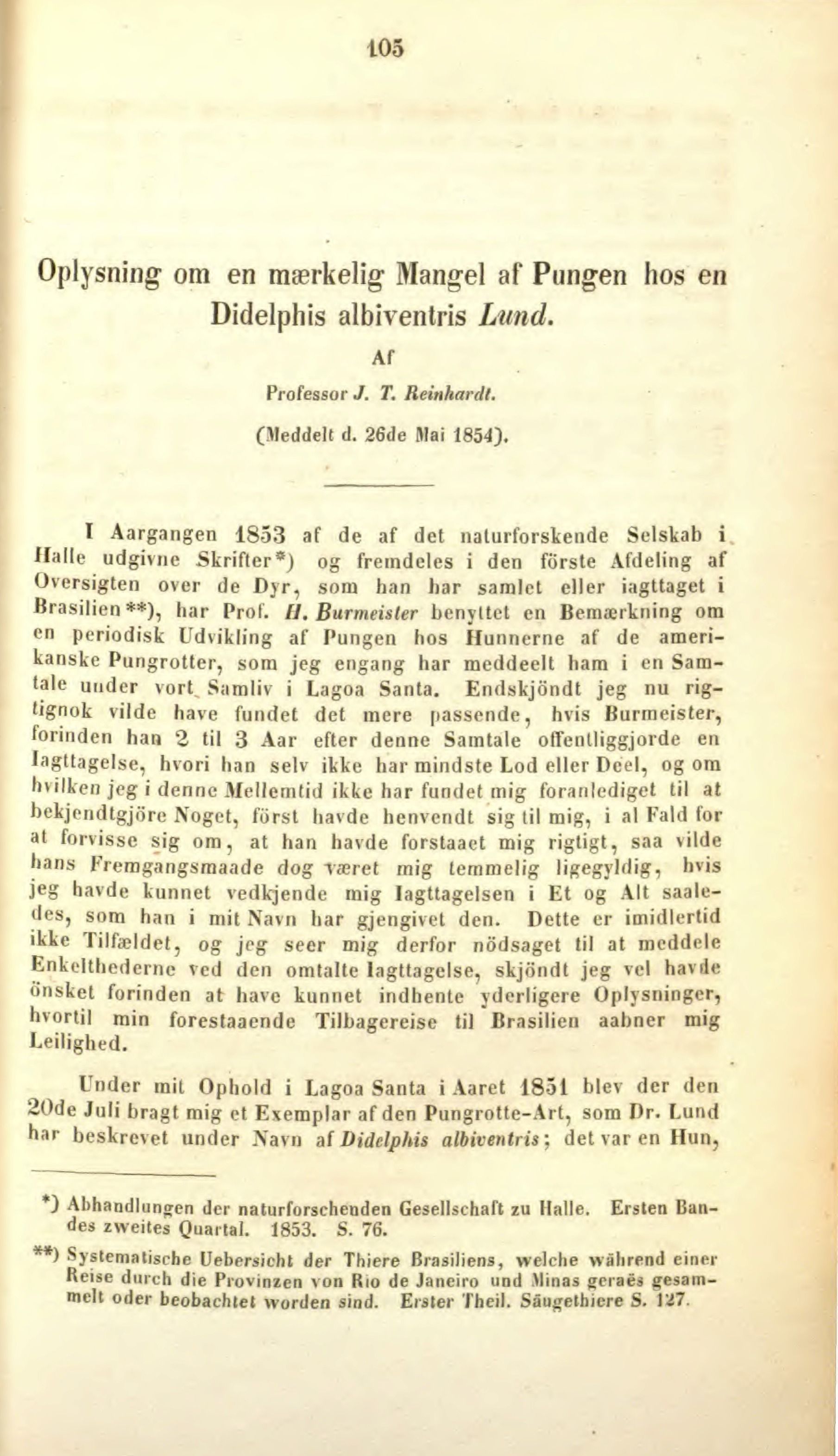 Brasilien**), har Prof. H. Burmeister benyttet en Bemærkning om