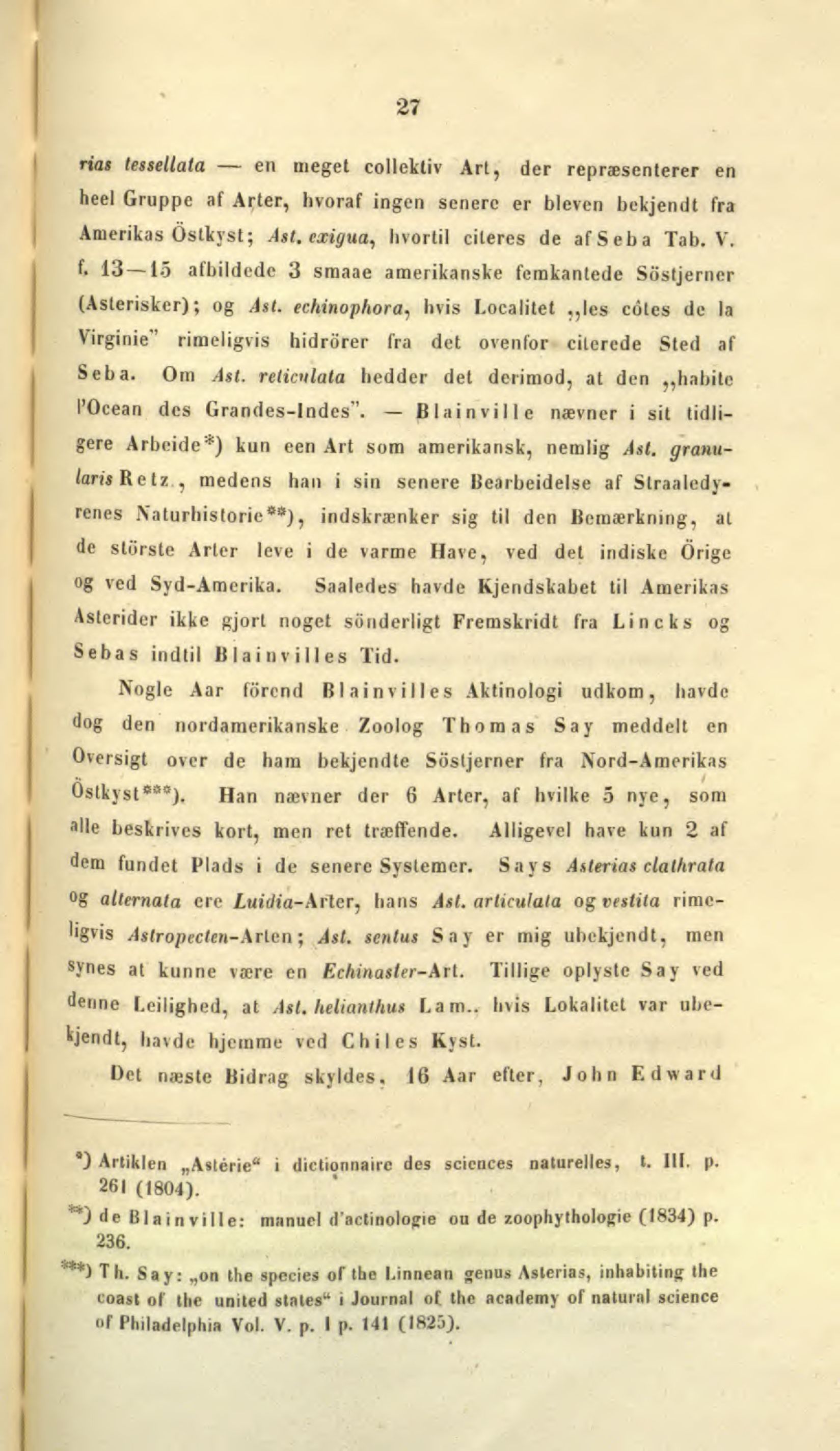 ***) T li. Say: ,,on the species of tbe Linnean genus Asterias, inhabiting ihe
