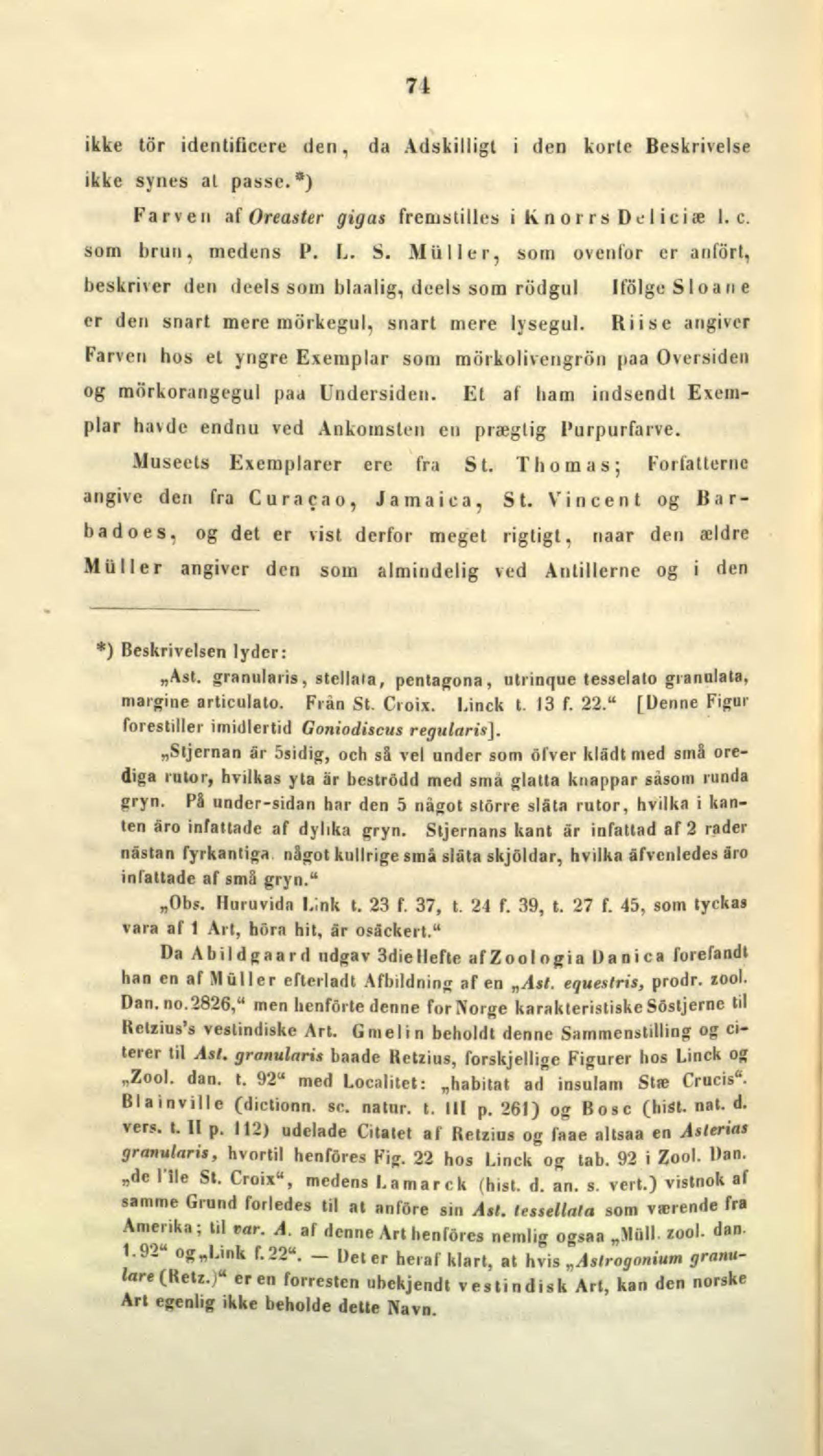 Farven af Oreaster gigas fremstilles i k n o r r s D e l ic i æ I. c.