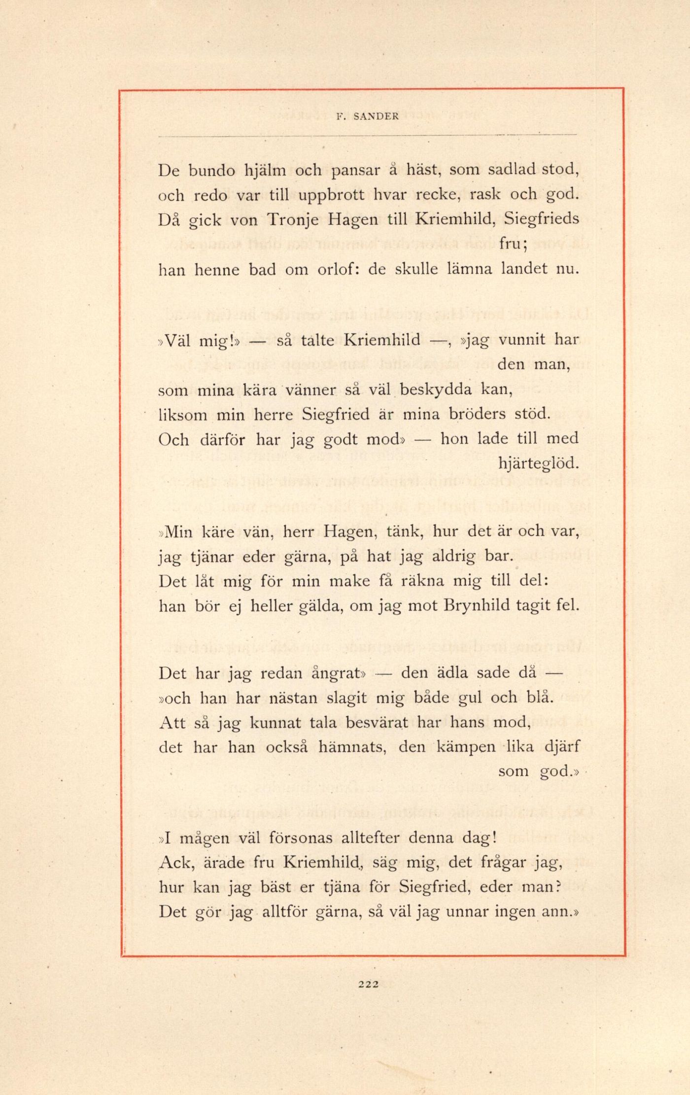 Väl migb — så talte Kriemhild —, »jag vunnit har