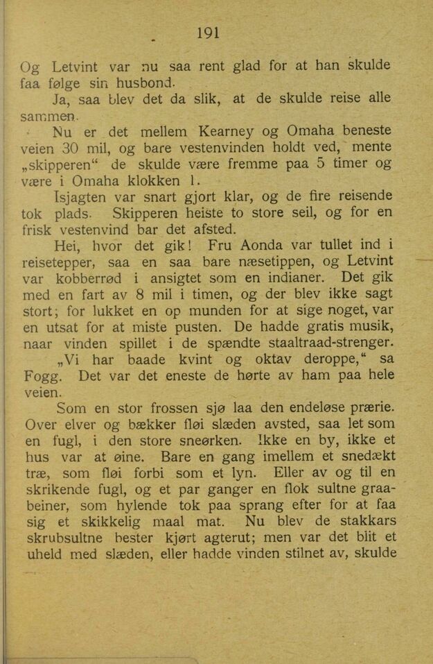 veien 30 mil, og bare vestenvinden holdt ved, mente