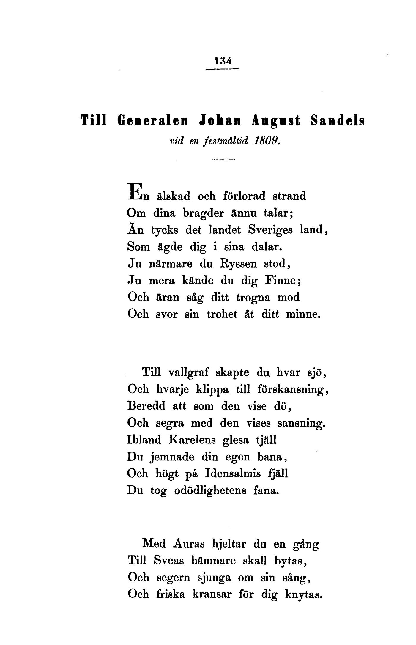 Till Generalen Johan August Sandels