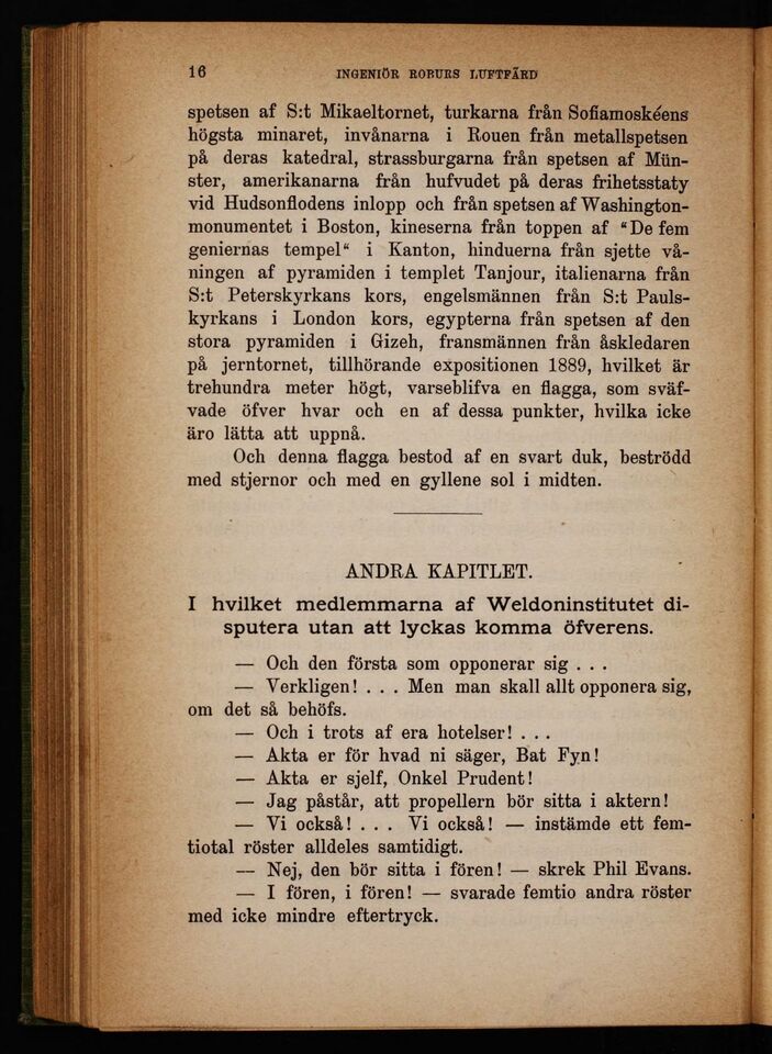 Full resolution (JPEG) - On this page / på denna sida - 1. kap. Hvari den lärda och den okunniga verlden äro båda lika förvånade - 2. kap. I hvilket medlemmarna af Weldoninstitutet disputera utan att lyckas komma öfverens
