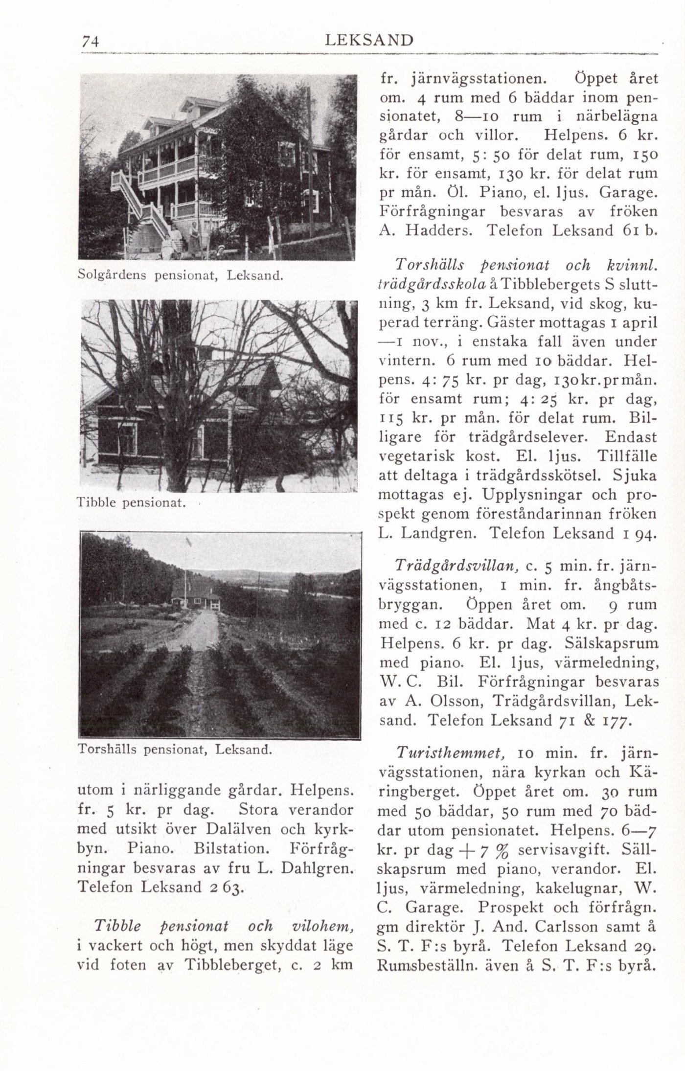 Leksand. Telefon Leksand 71 & 177.