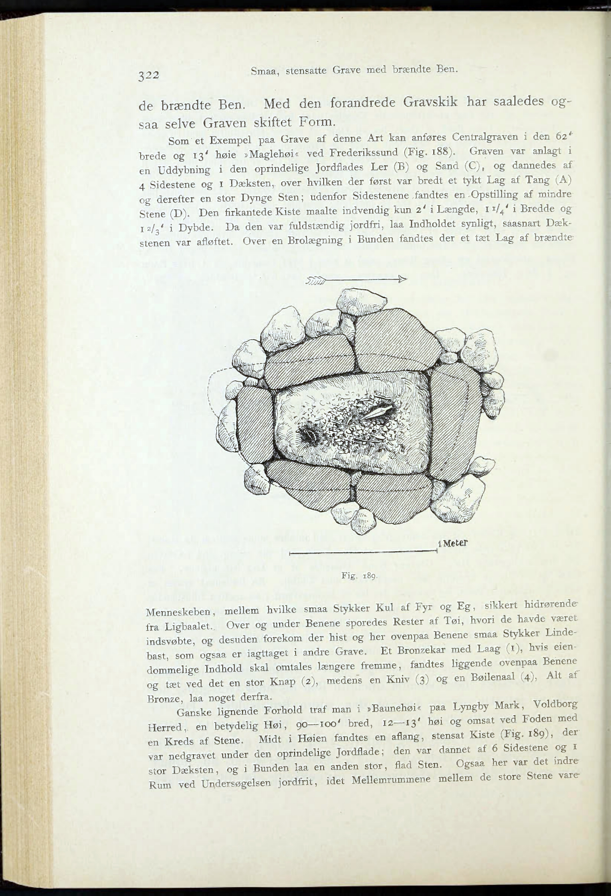 brede og 13" høie »Maglehøi« ved Frederikssund (Fig. 188). Graven var anlagt i