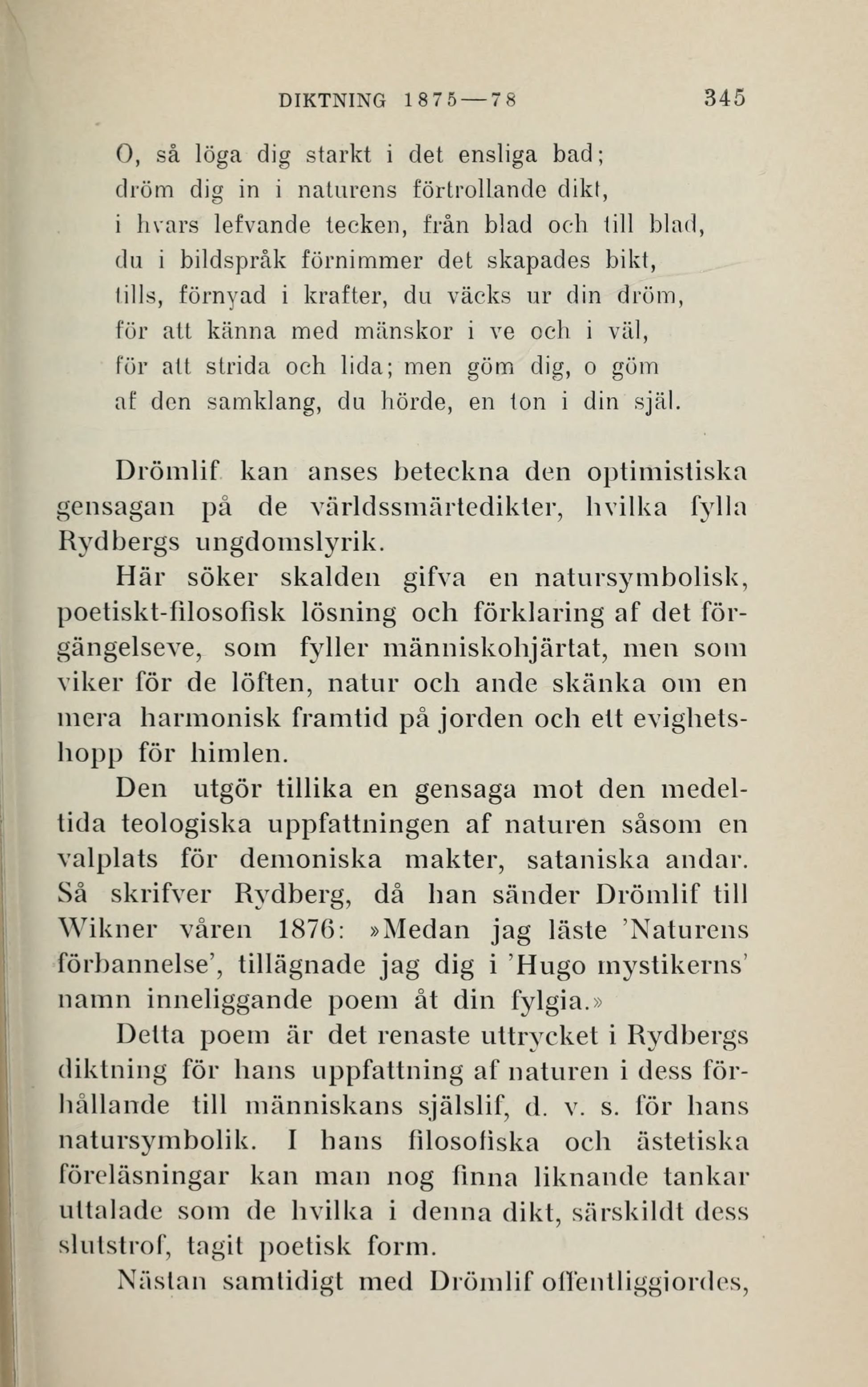 Så skrifver Rydberg, då ban sänder Drömlif till