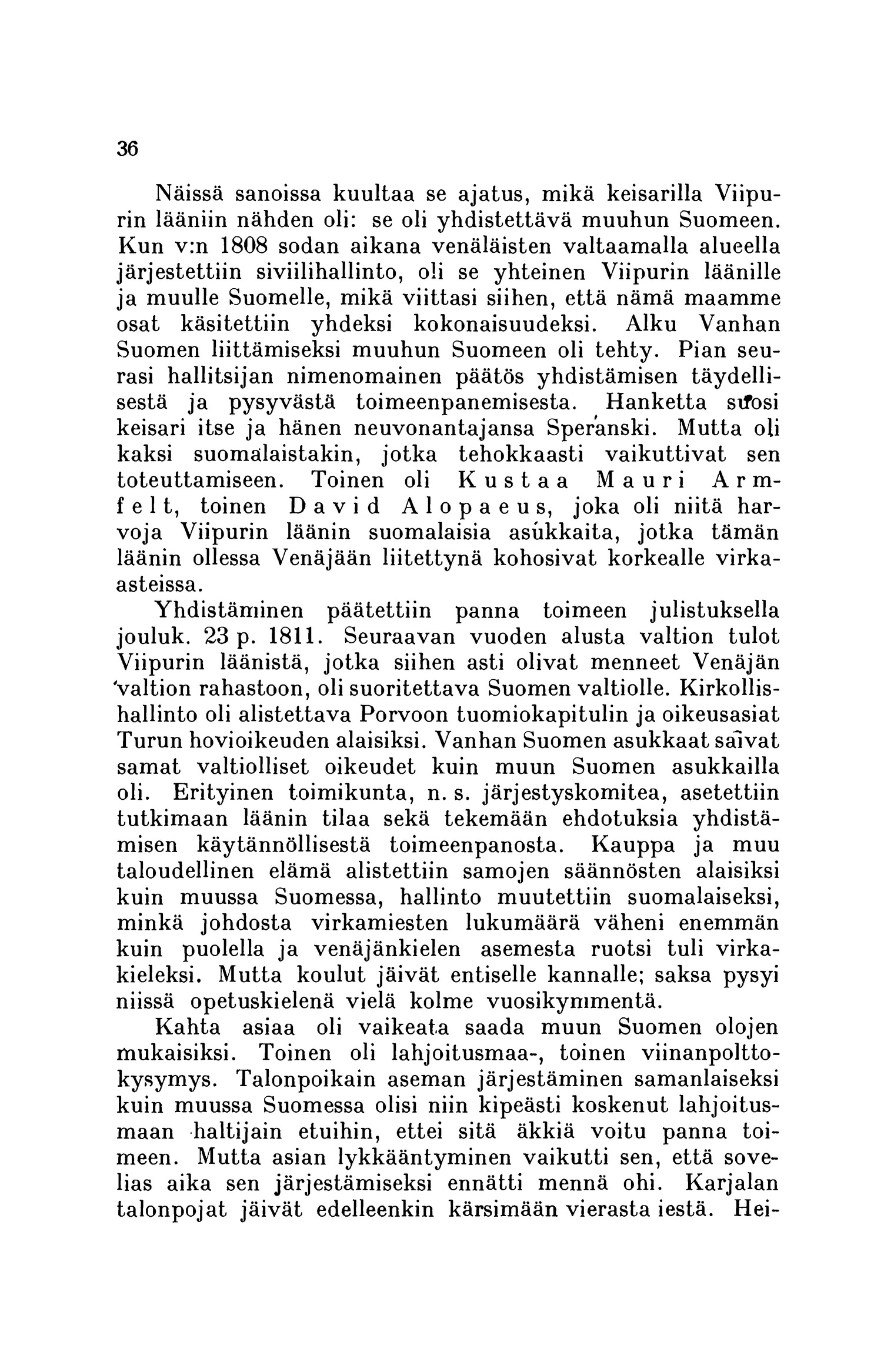 Viipurin lääniin nähden oli: se oli yhdistettävä muuhun Suomeen.