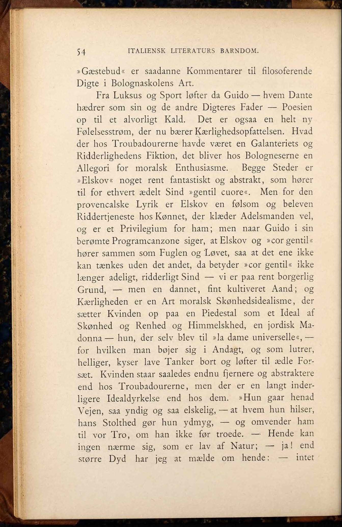berømte Programcanzone siger, at Elskov og »cor gentil«