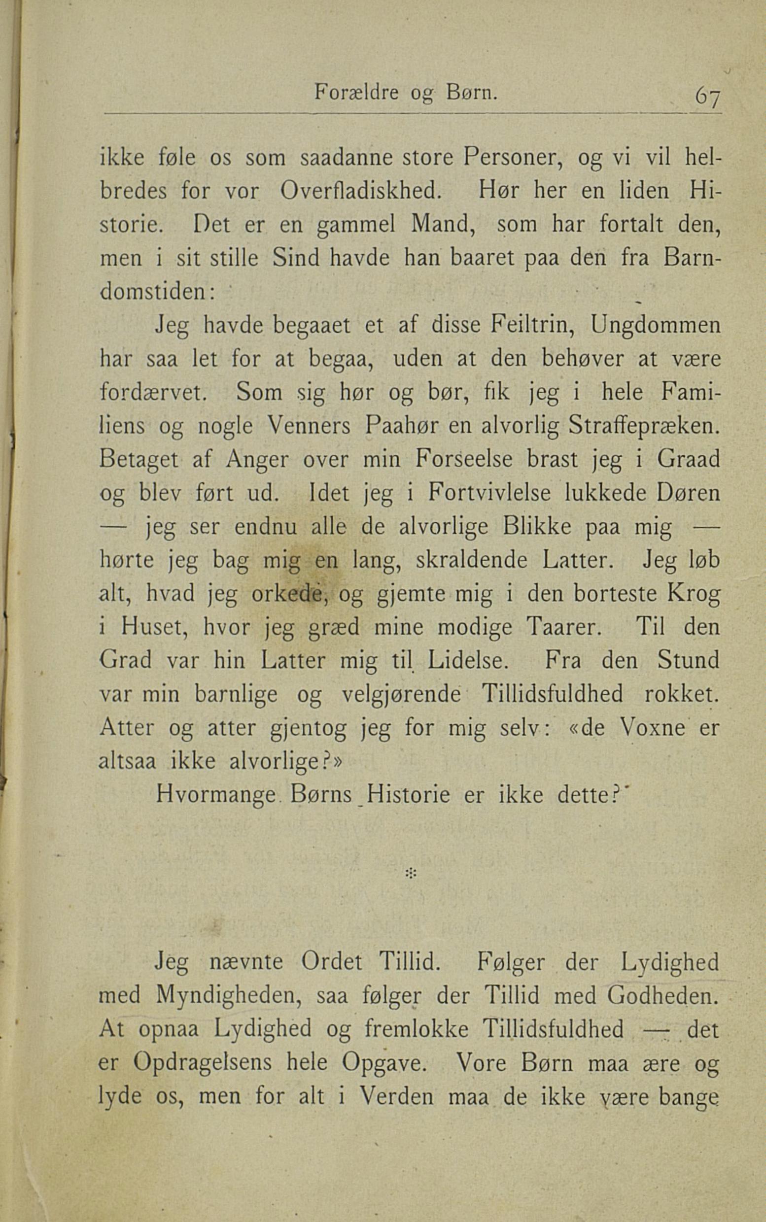 er Opdragelsens hele Opgave. Vore Børn maa ære og