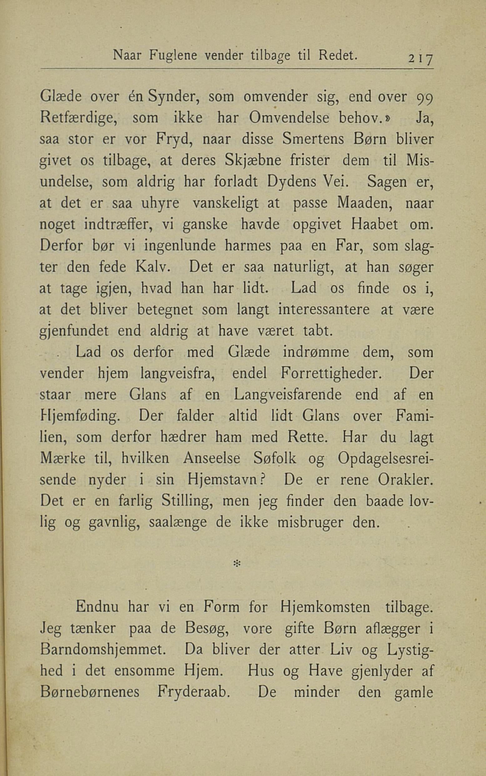 Endnu har vi en Form for Hjemkomsten tilbage.