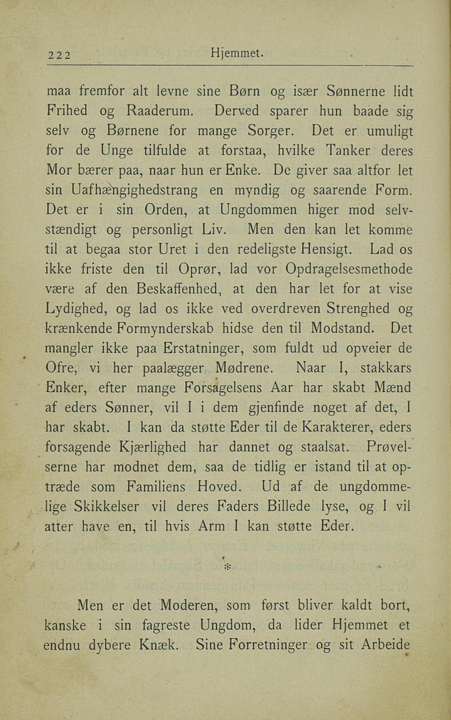 kanske i sin fagreste Ungdom, da lider Hjemmet et