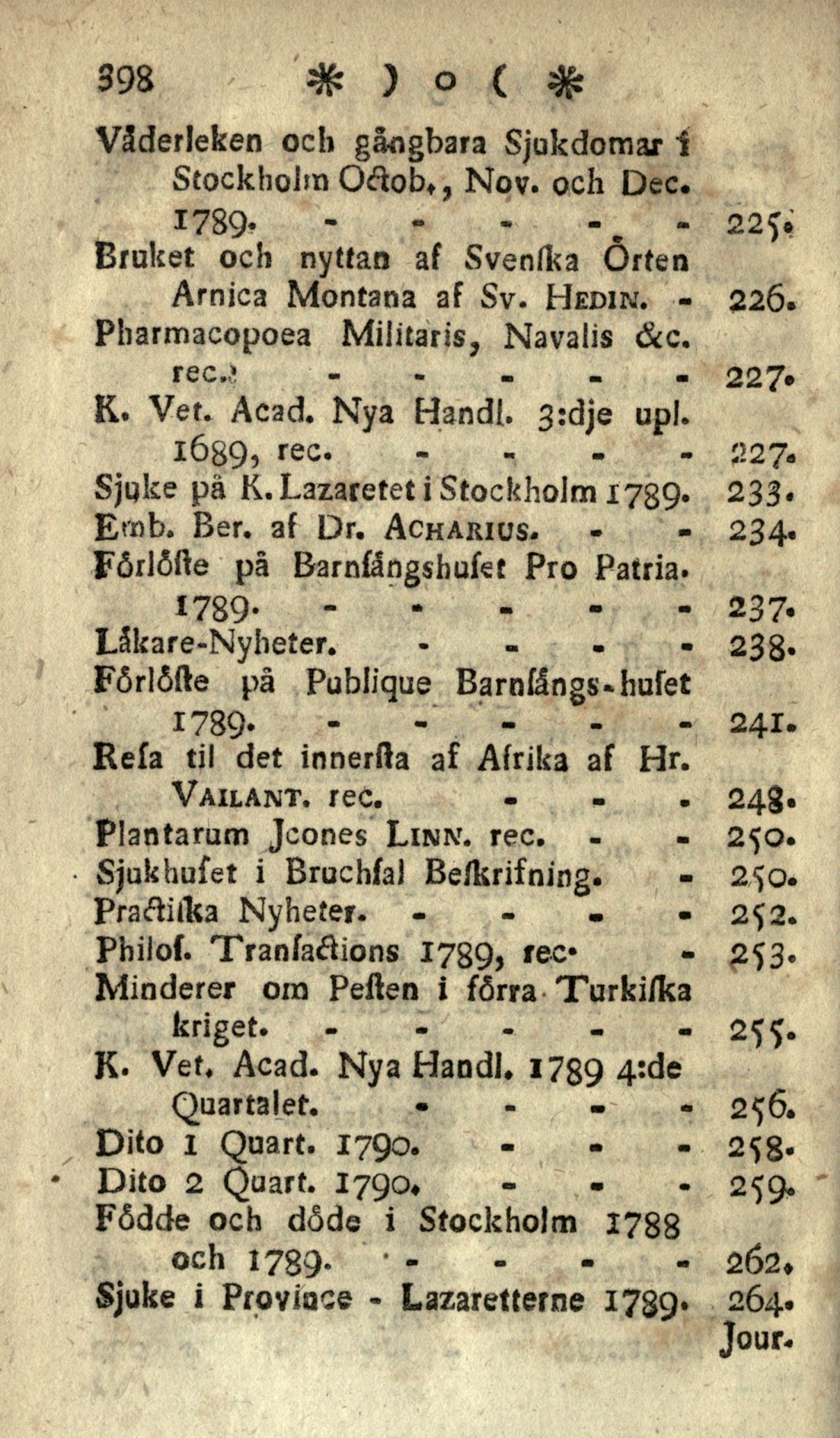 Sjuke pä K. Lazaretet i Stockholm 1789»