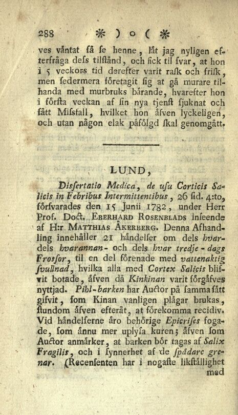 Salicis in Febribus Intermittentibus, 26 fid. 4:to,