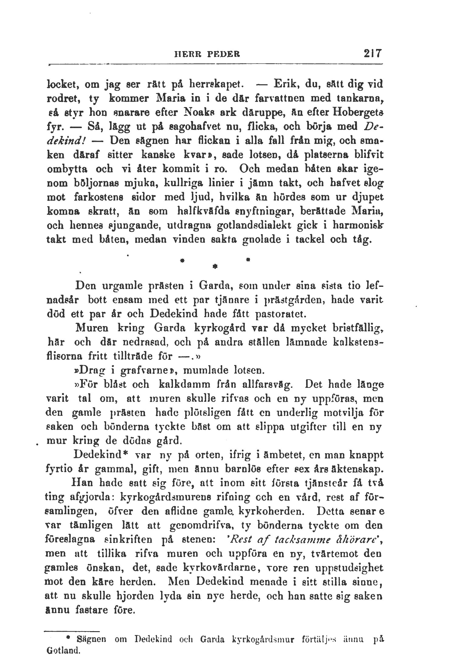 * Sägnen om Dedekind ocli Garda kyrkogårdsmur förtälj’** ännu på.