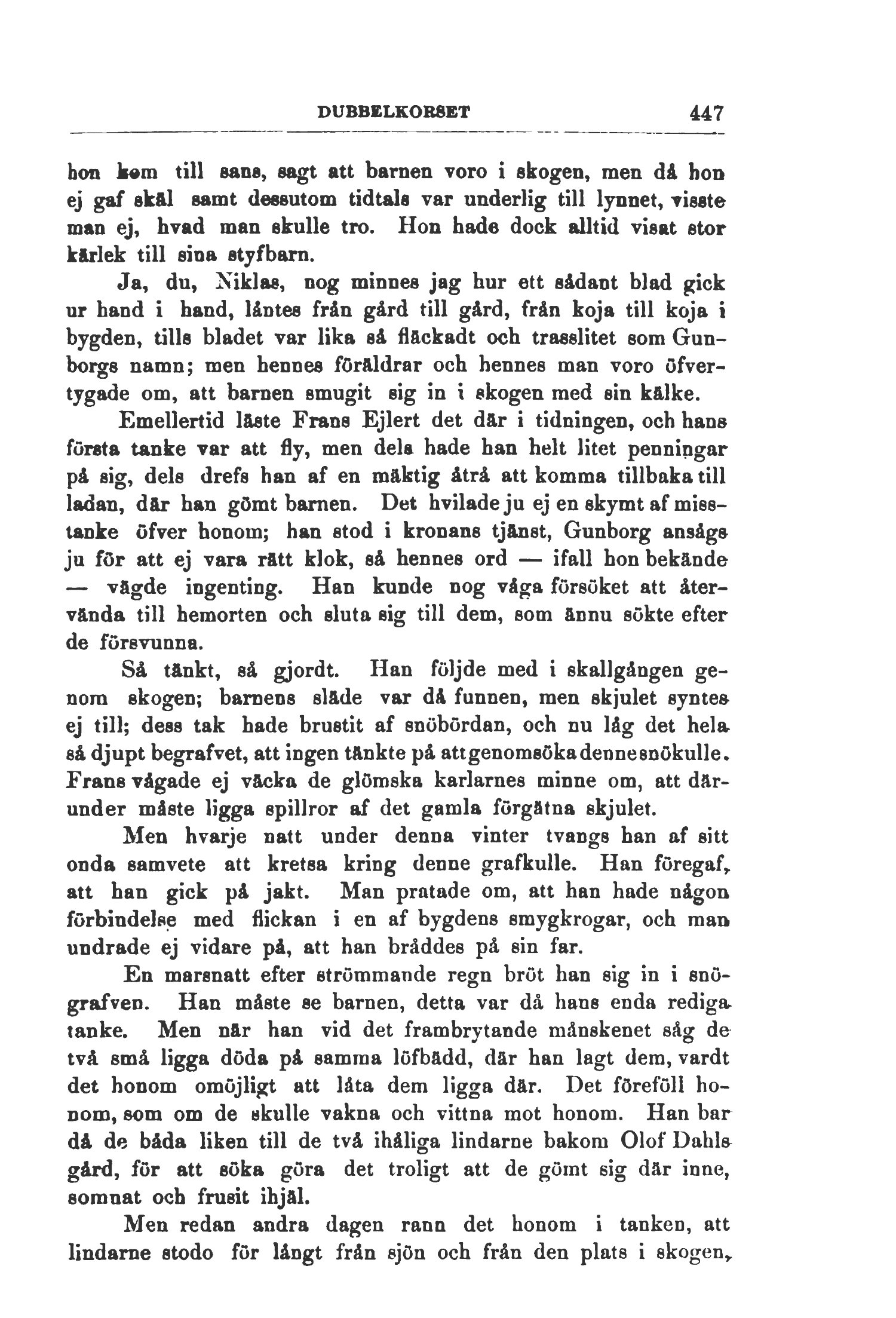 genom skogen; barnens släde var då funnen, men skjulet synte»