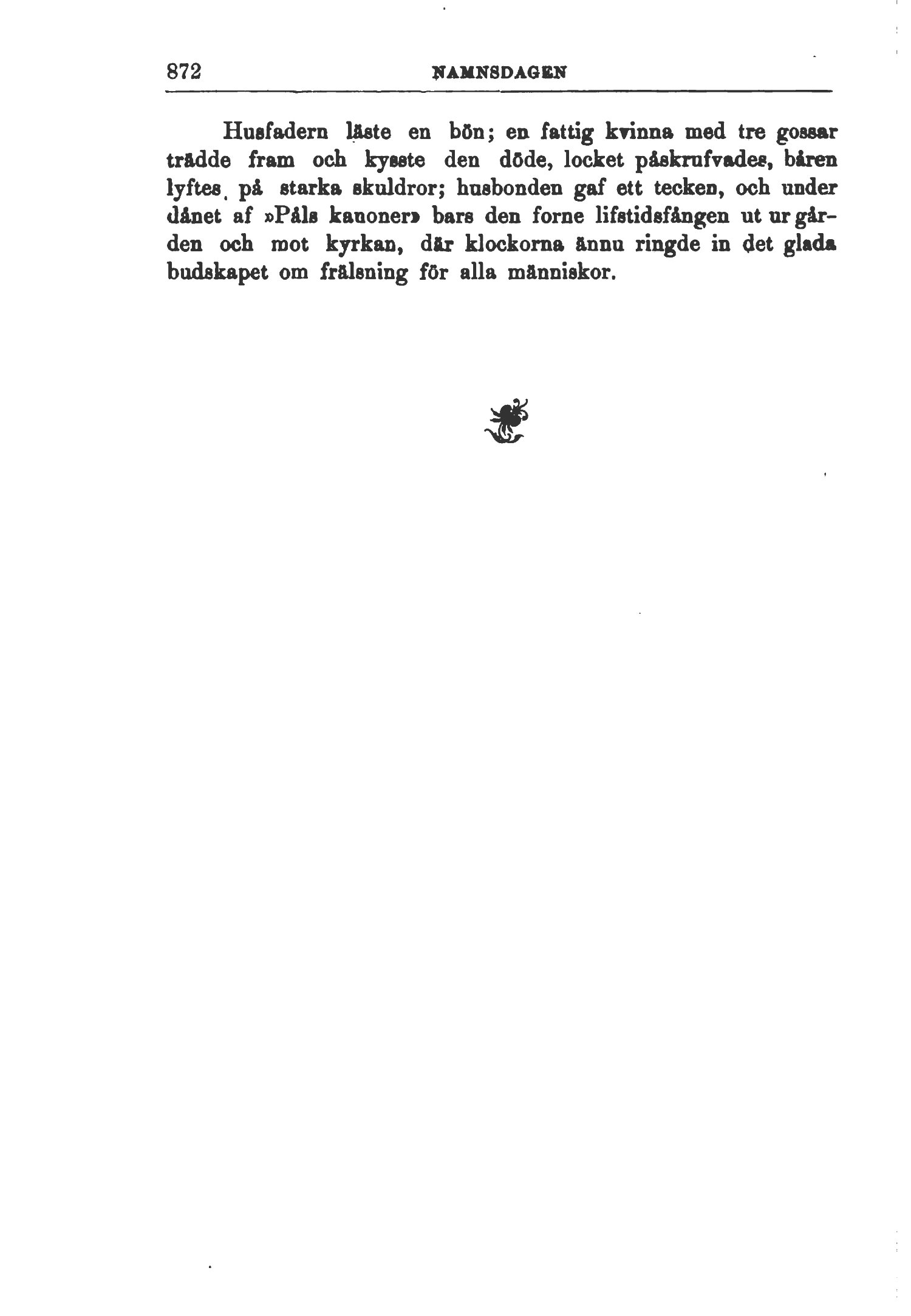 gården och mot kyrkan, där klockorna ännu ringde in det glada