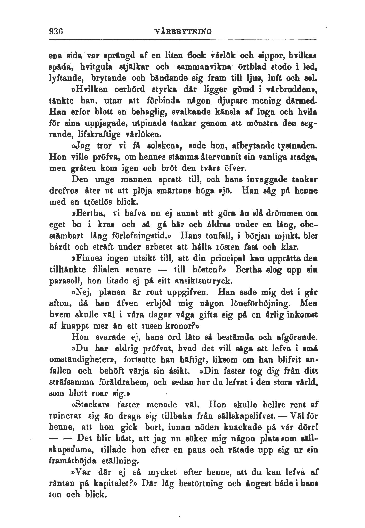 »Jag tror vi få solsken», sade hon, afbrytande tystnaden.