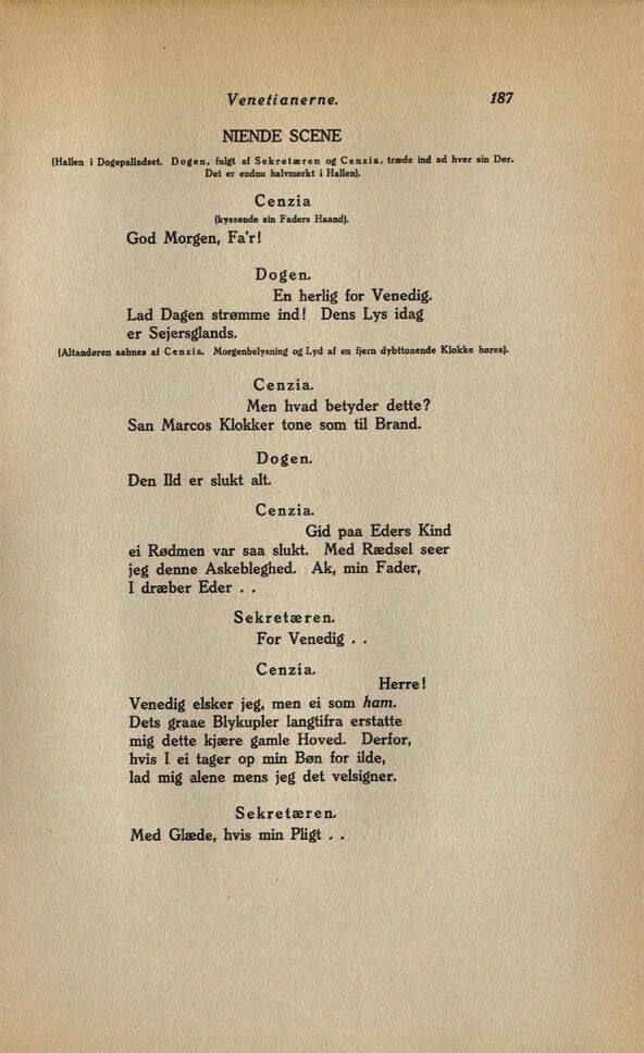 (Hallen i Dogepalladset Dog en, fulgt af Sekretæren ogCenzia, træde ind ad hver sin Dør.
