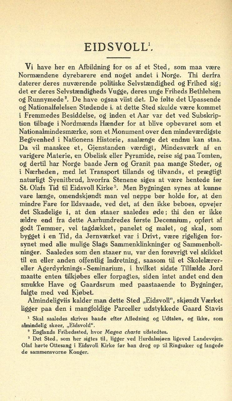 Almindeligviis kalder man dette Sted Eidsvoll", skjøndt Værket