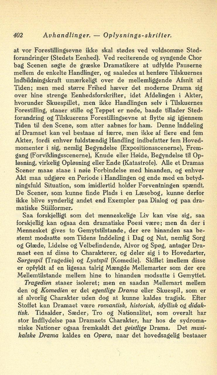 forskjellig kan ogsaa den dramatiske Poesi være’, men da der i