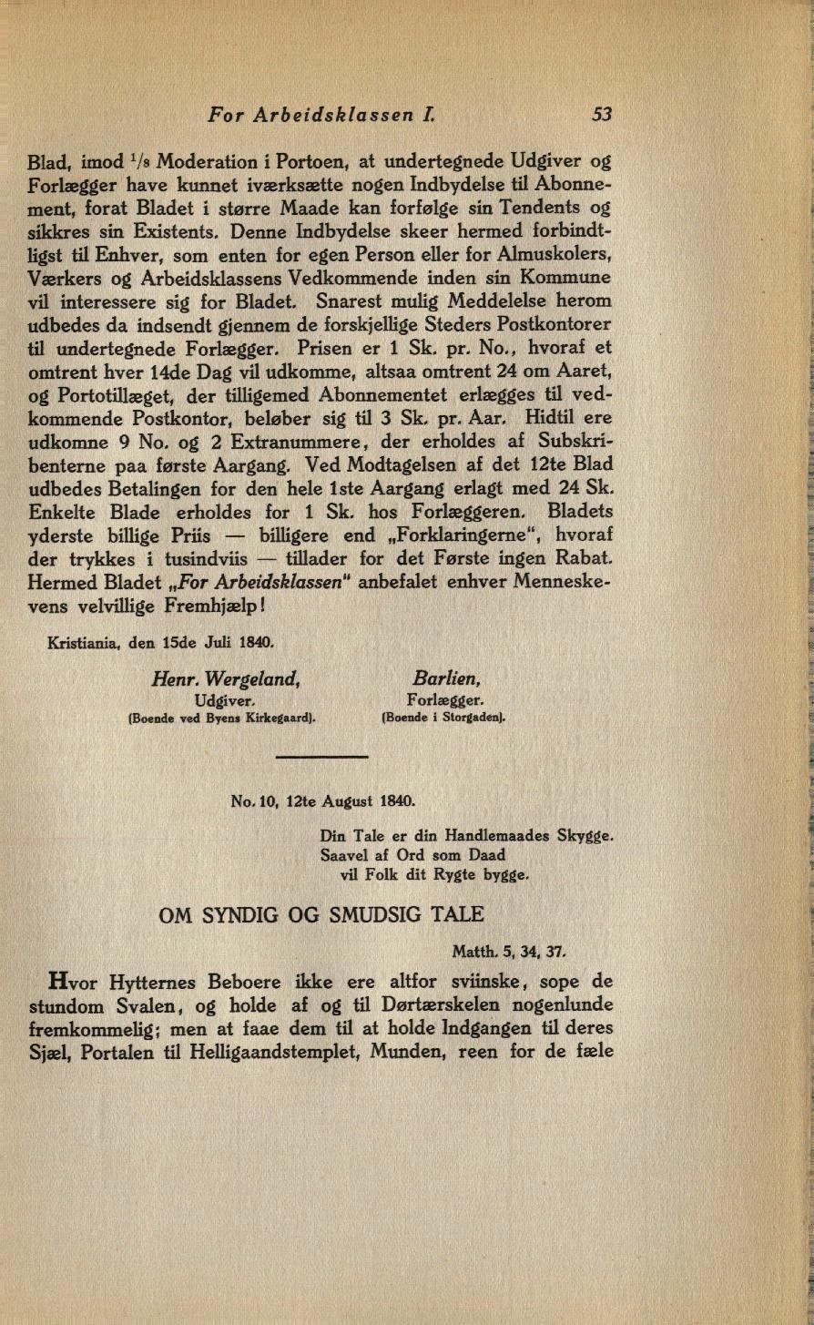 Hermed Bladet 1tFor Arbeidsklassen" anbefalet enhver Menneske