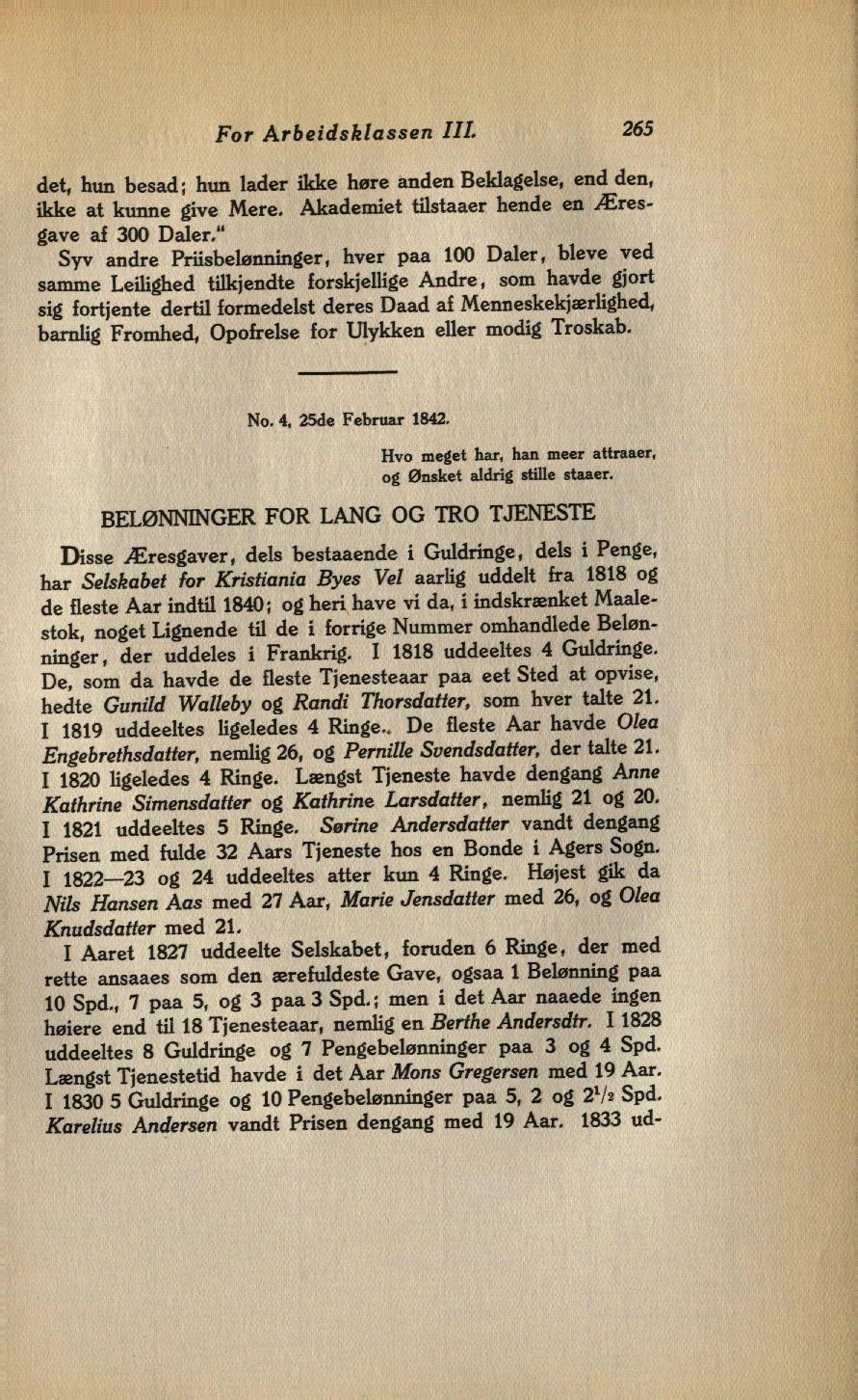 I 1819 uddeeltes ligeledes 4 Ringe.. De fleste Aar havde Olea