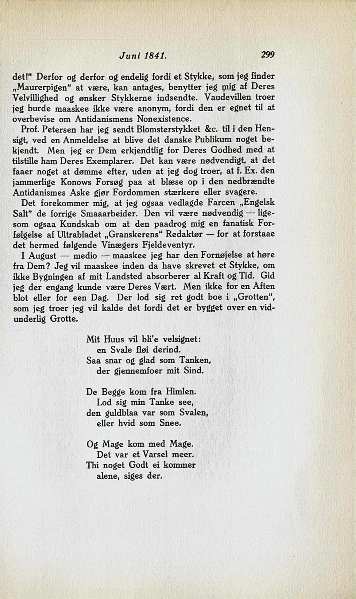fra Dem? Jeg vil maaskee inden da have skrevet et Stykke, om