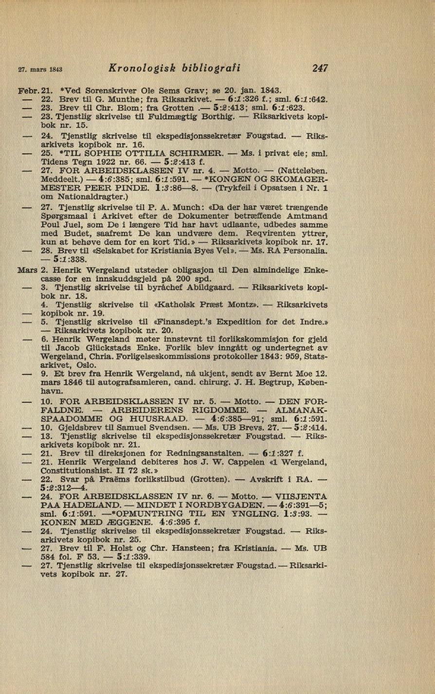 Kronologisk bibliografi 24727. mars 1843