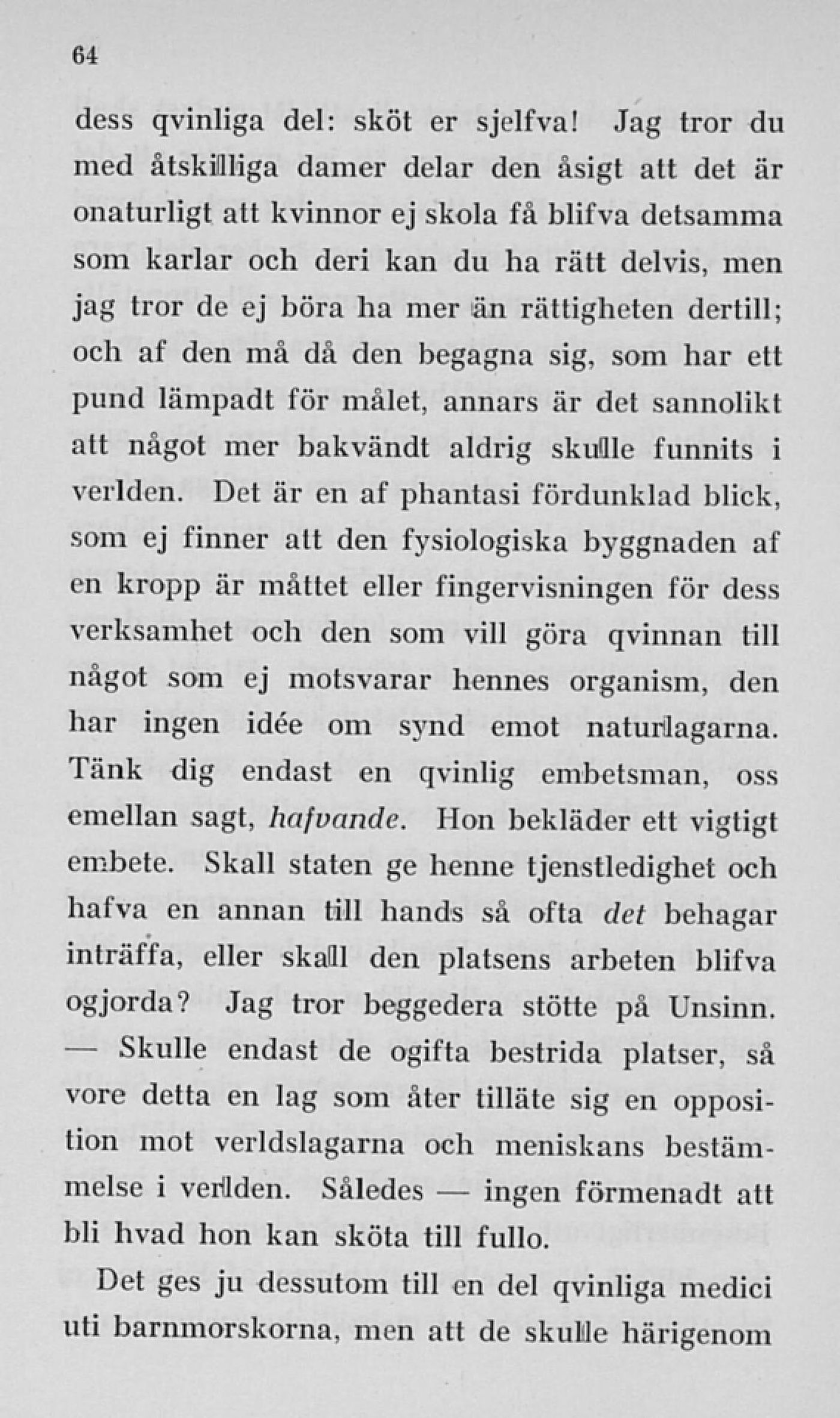 dess qvinliga del: sköt er sjelfva! Jag tror du