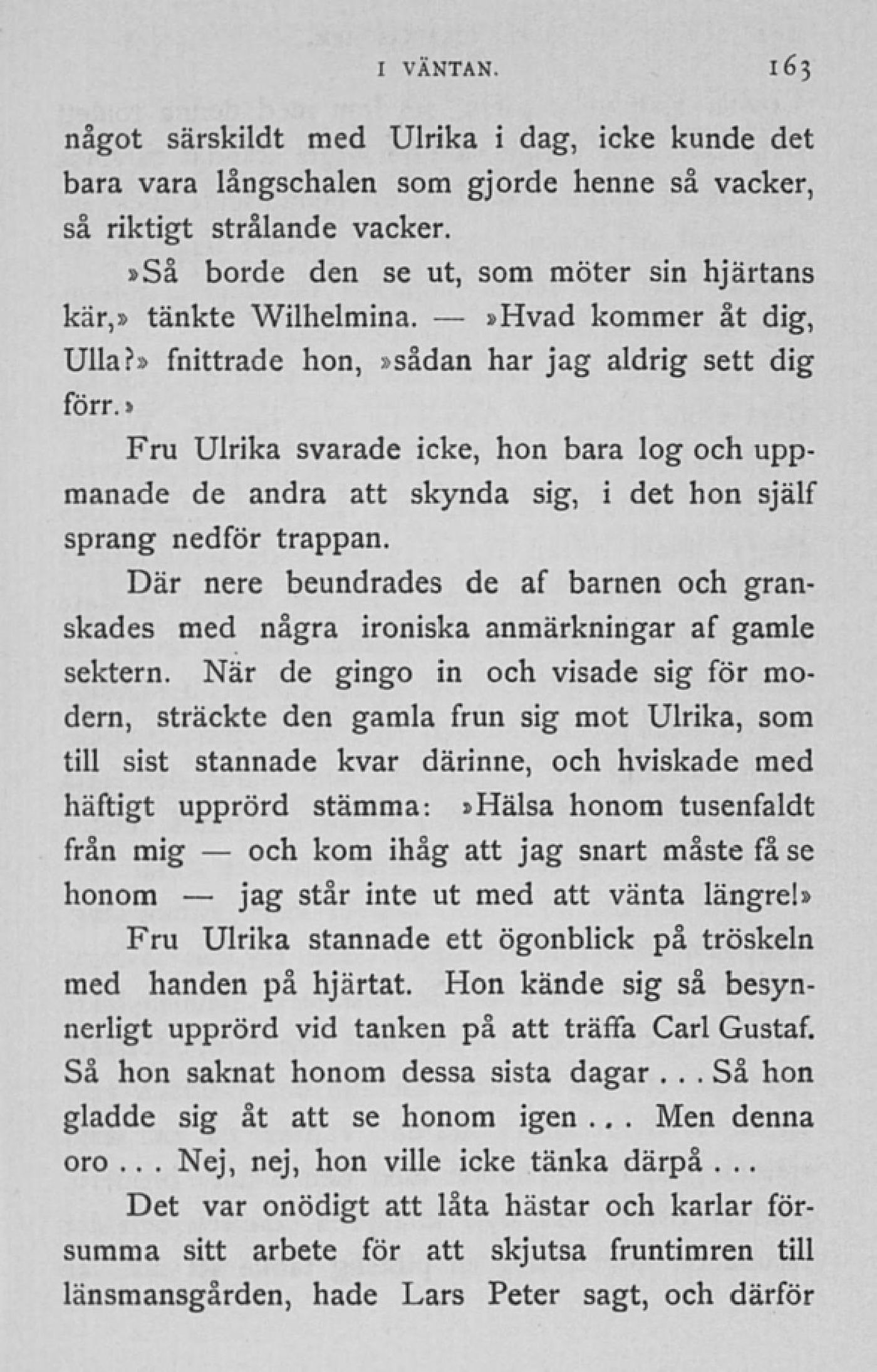kär,» tänkte Wilhelmina. — »Hvad kommer åt dig,