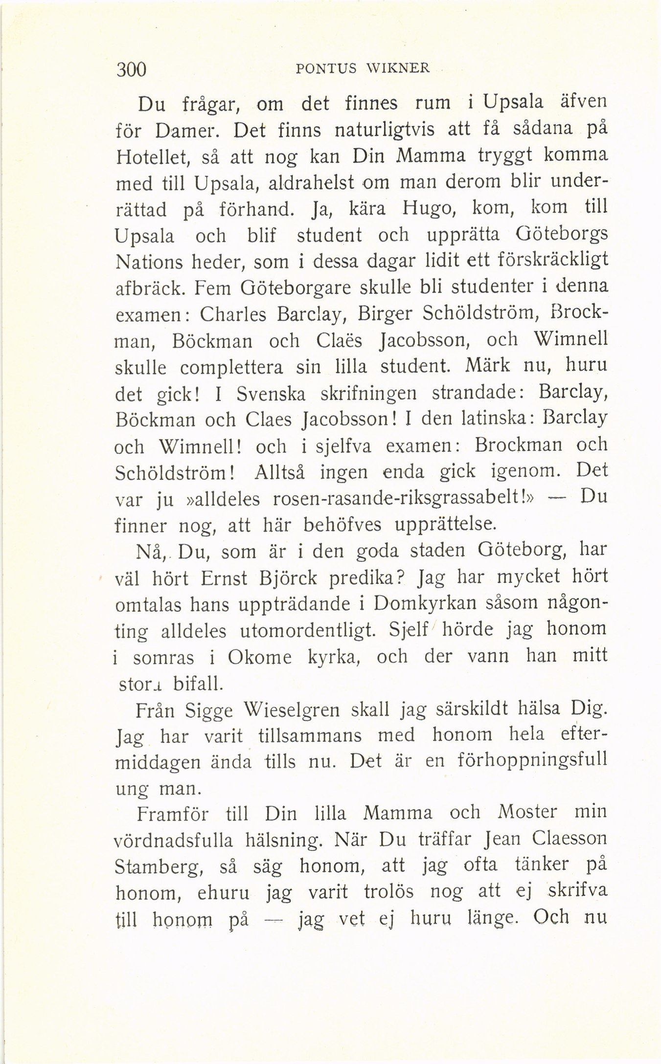Från Sigge Wieselgren skall jag särskildt hälsa Dig.