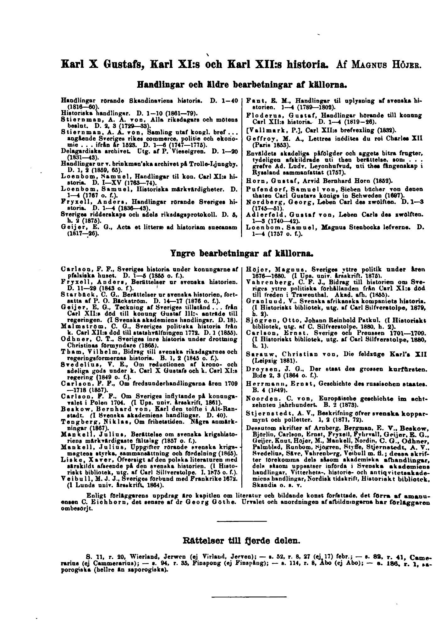 Karl X Gustafs, Karl XI:s och Karl XII:s historla. Af Magnus Höjer.
