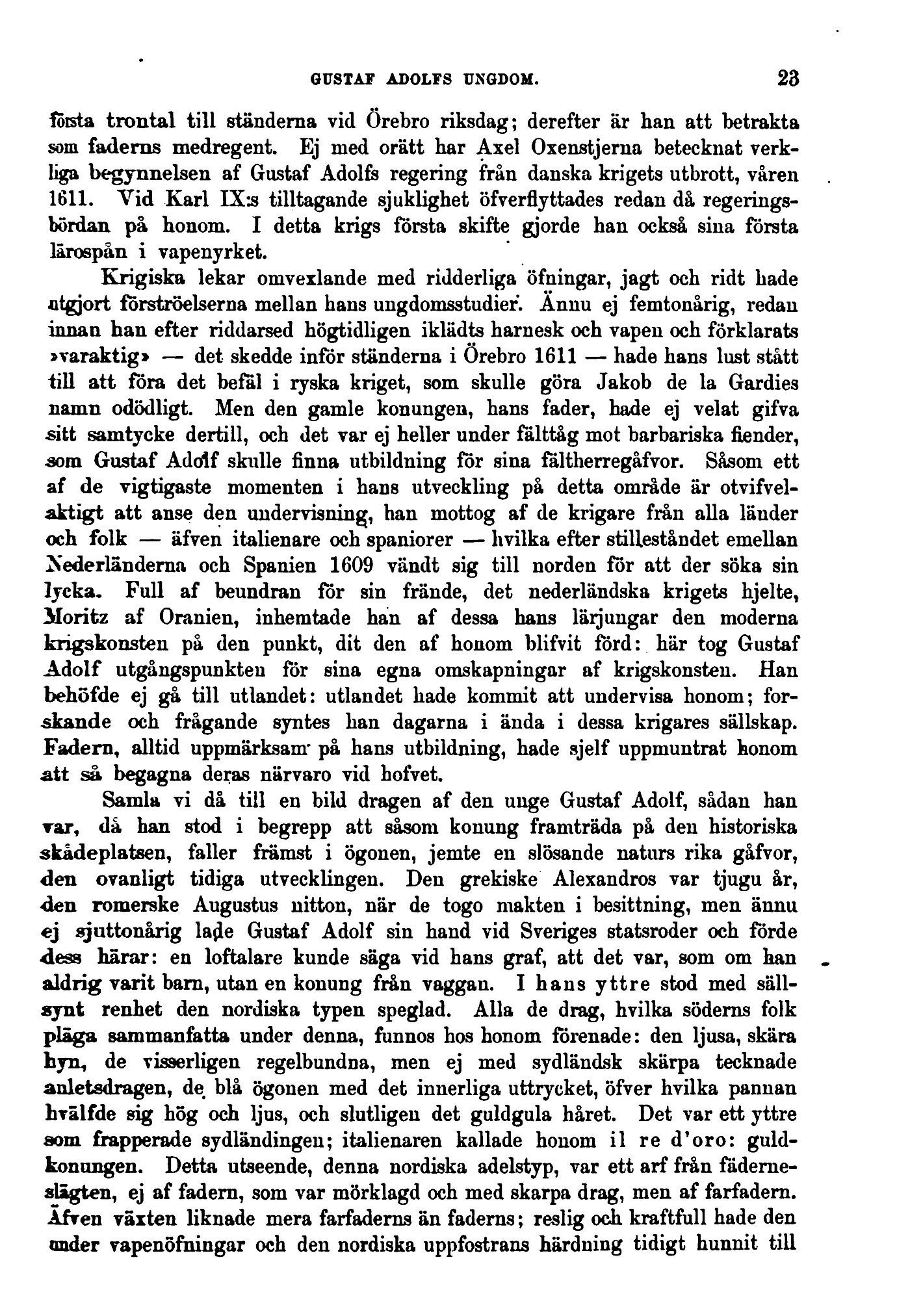 som Gustaf Adolf skulle finna utbildning för sina faltherregåfvor. Såsom ett