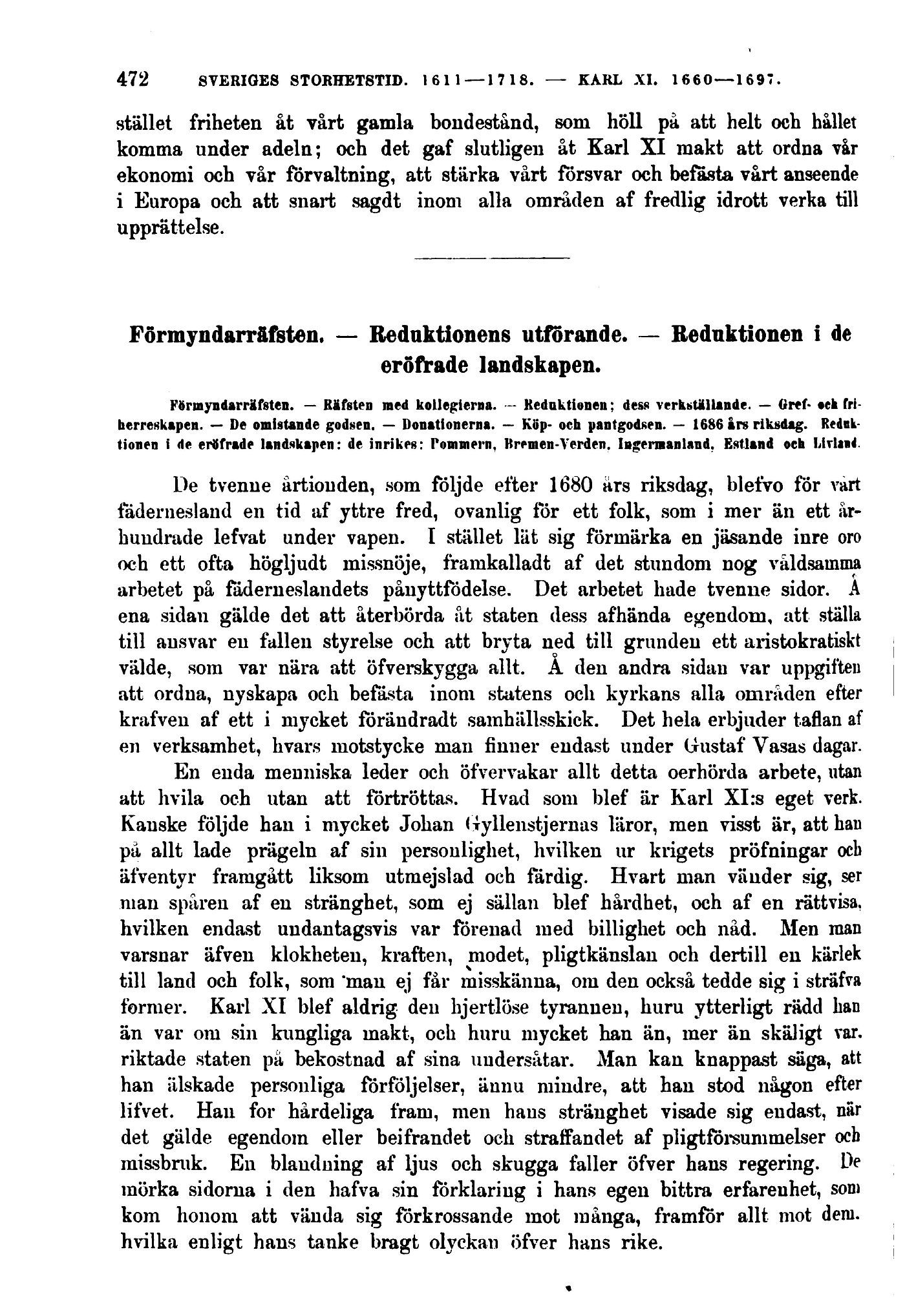 Full resolution (JPEG) - On this page / på denna sida - KARL XI (1660—1697) - Statshvälfningen och redaktionen. — Riksdagarna 1680 och 1682 - Förmyndarräfsten. — Reduktionens utförande. — Reduktionen i de eröfrade landskapen