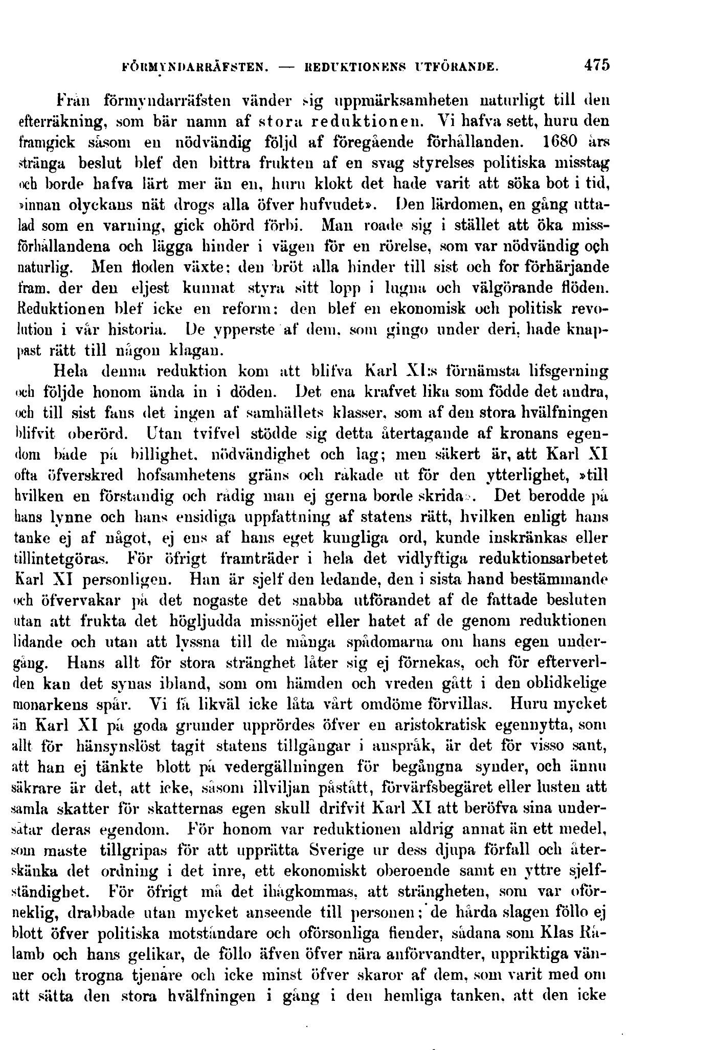 Hela denna reduktion kom att blifva Karl Xl:s förnämsta lifsgerning