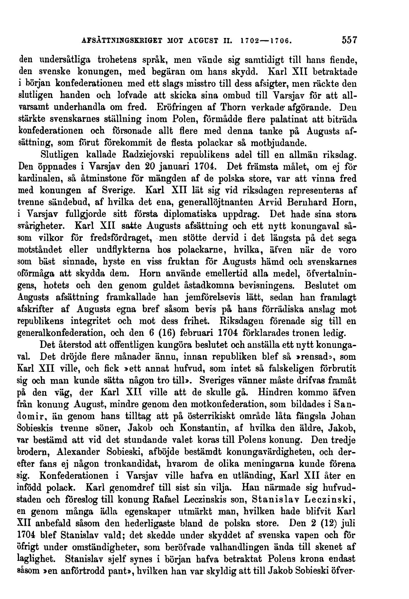 sig. Konfederationen i Varsjav ville hafva en utländing, Karl XII åter en