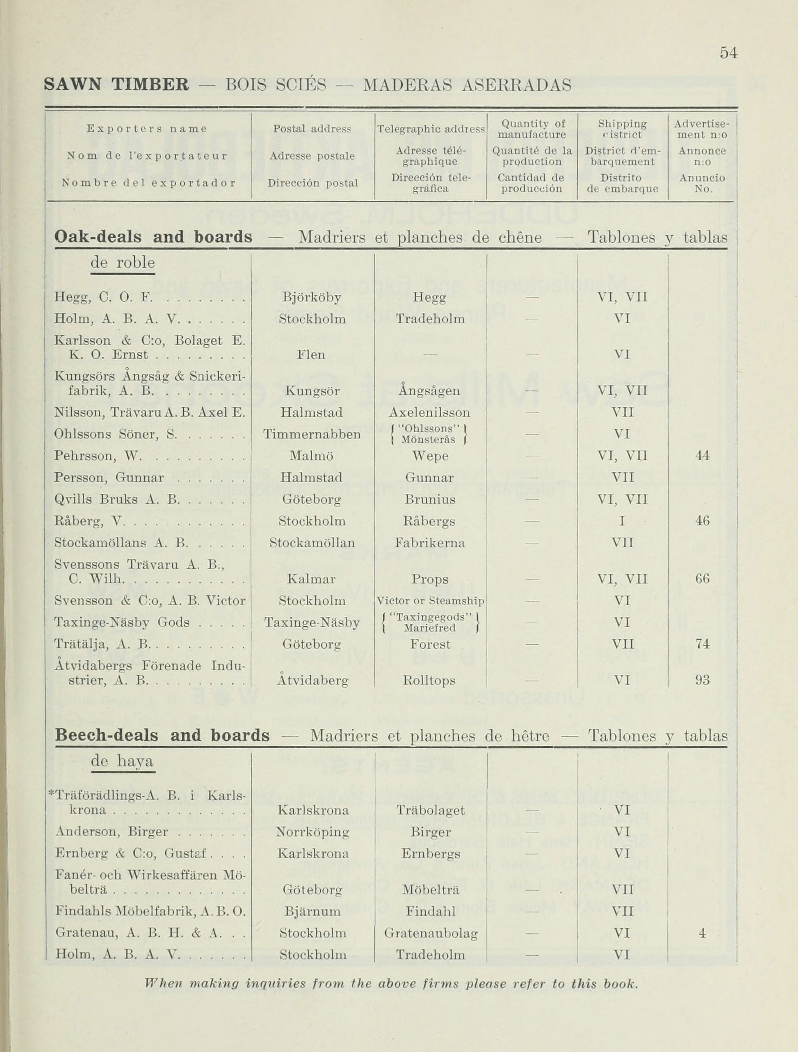 Exporters name Postal address Telegraphic address Quantity of manufacture Shipping ristrict [-Advertisement-] {+Advertise- ment+} n:o 1