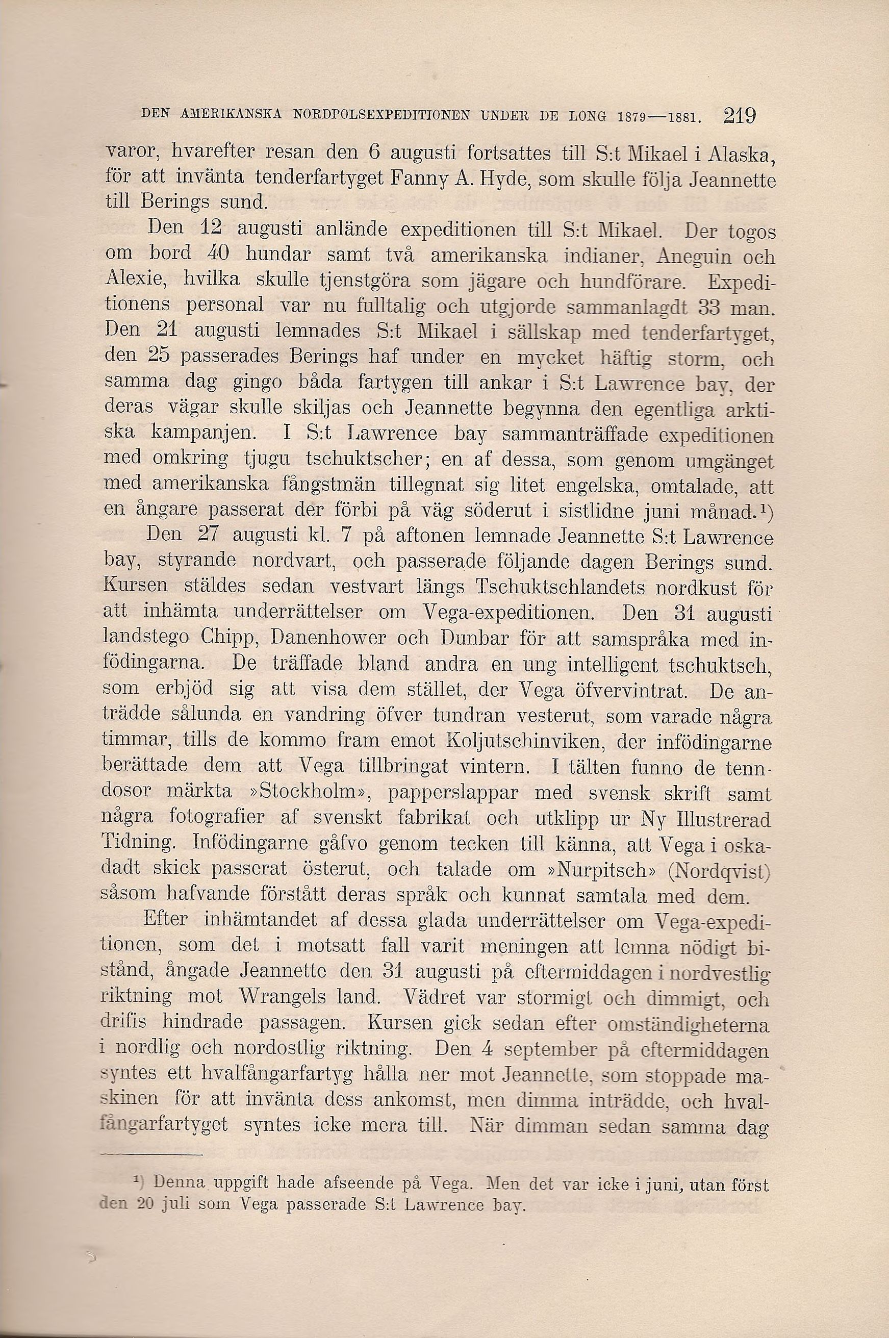 Vega-expeditionen, som det i motsatt fall varit meningen att lemna nödigt