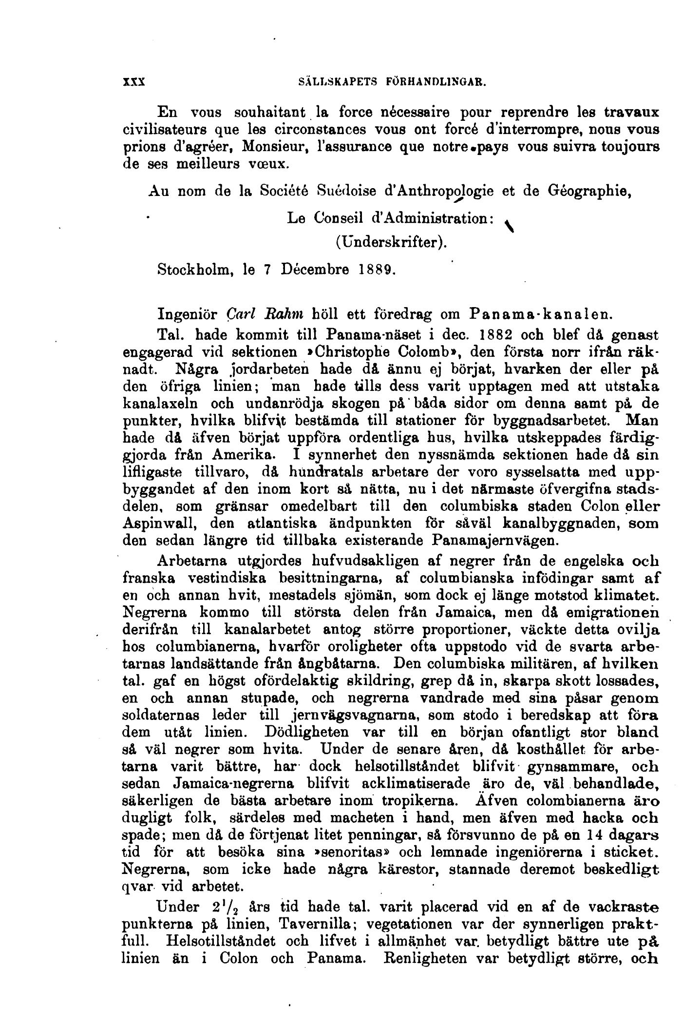 Tal. hade kommit till Panama-näset i dec. 1882 och blef då genast