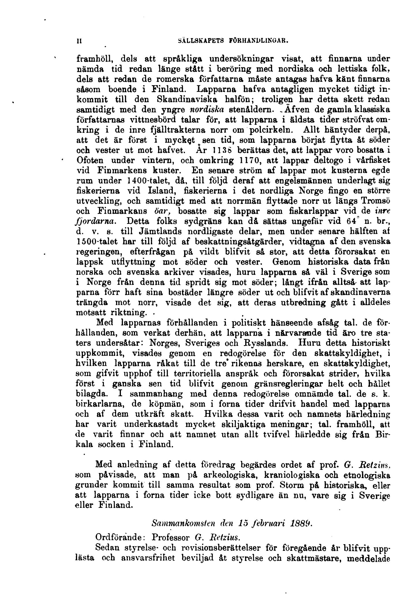 Ordförande: Professor G. Retzius.