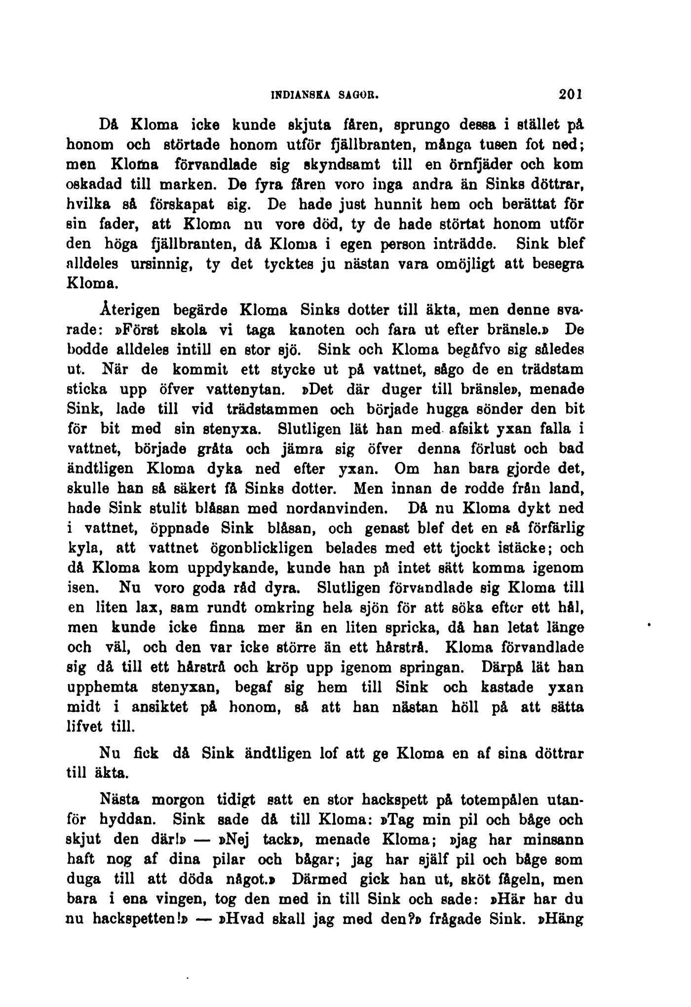 utanför hyddan. Sink sade då till Kloma: »Tag min pil och båge och