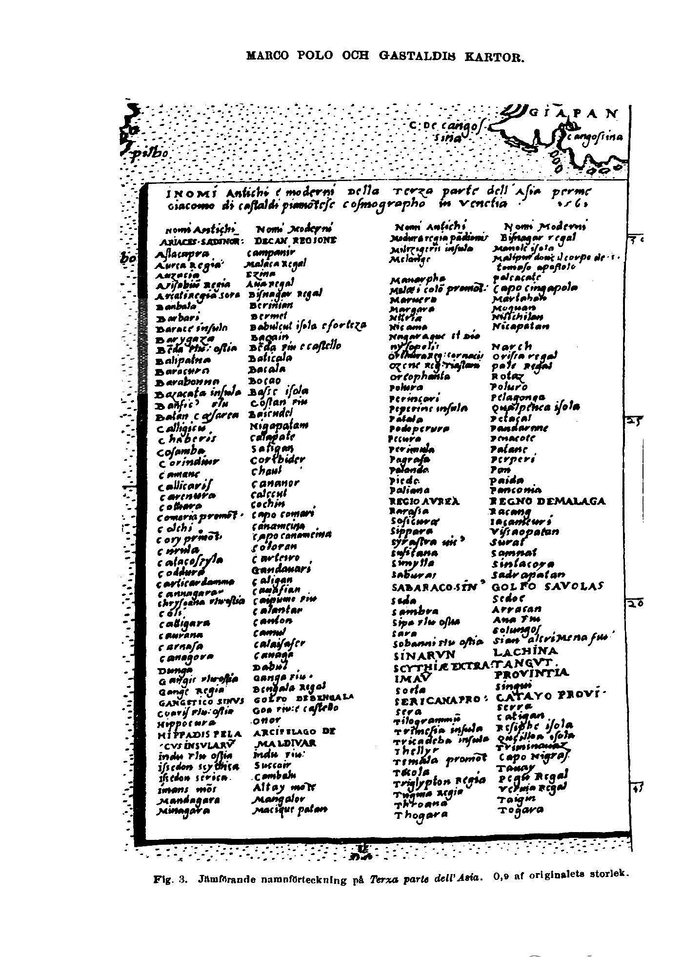 Fig. 3. JAmftrande naronfOrteckntng på Tena parte delVAaia. 0,» af originalet« storlek.