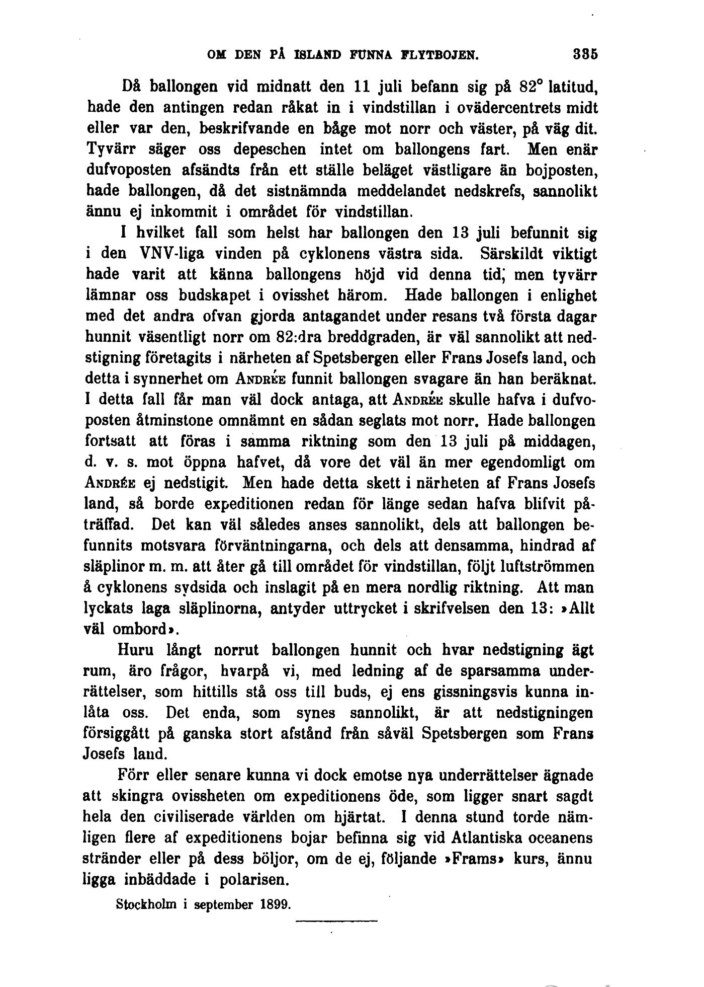 Huru långt norrut ballongen hunnit och hvar nedstigning ägt