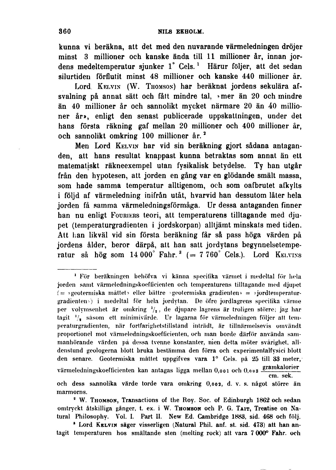 Lord Kelvin (W. Thomson) har beräknat jordens sekulära