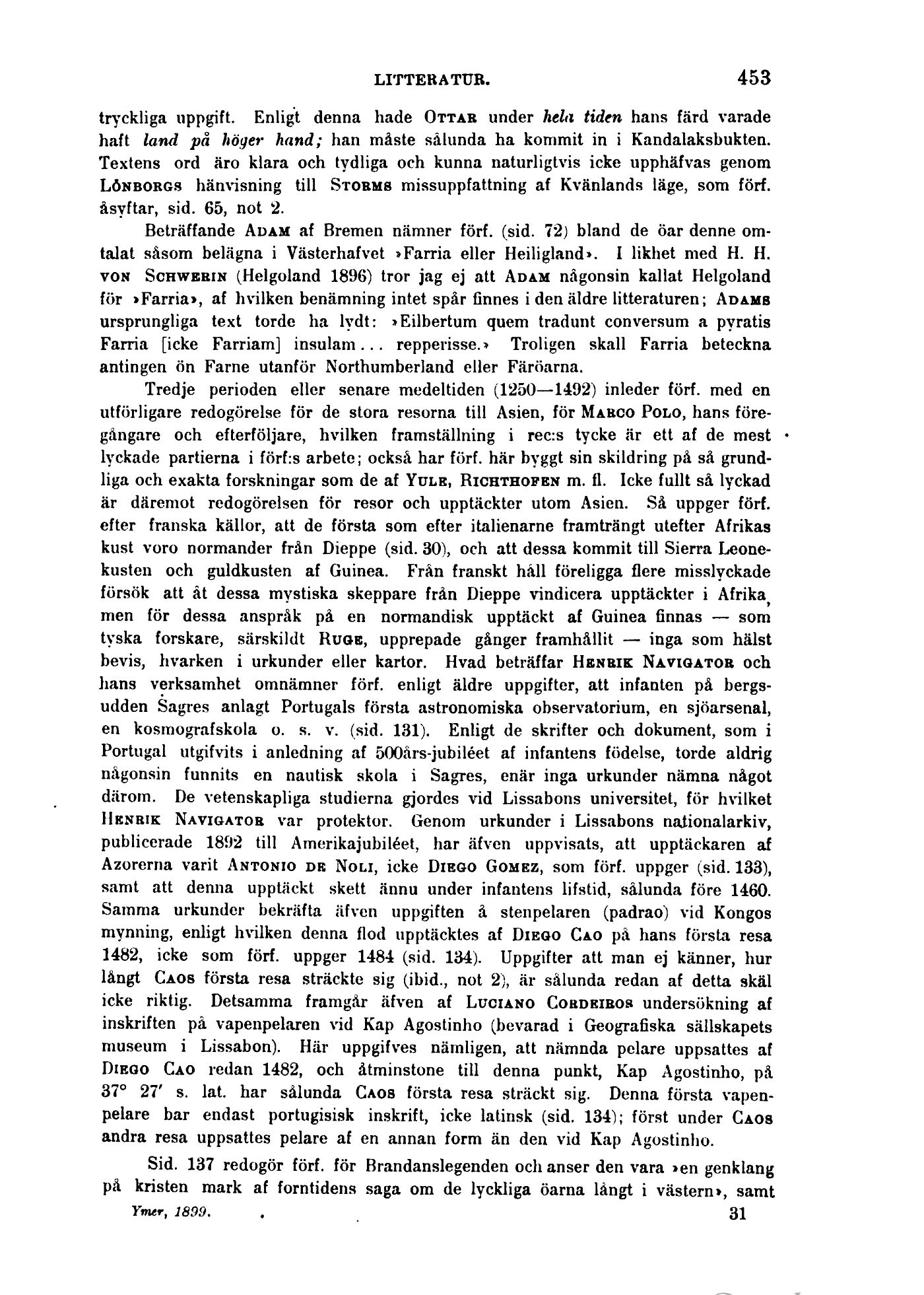 är däremot redogörelsen för resor och upptäckter utom Asien. Så uppger förf.