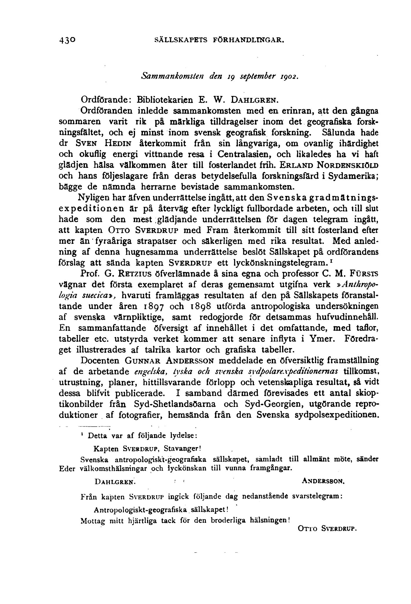 glädjen hälsa välkommen åter till fosterlandet frih. Erland Nordenskiöld