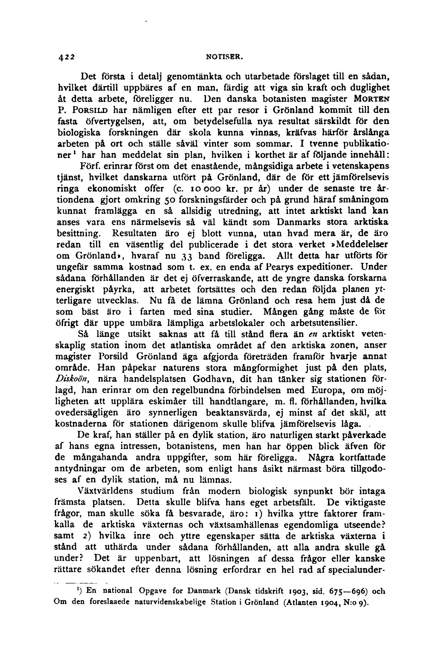 P. Porsild har nämligen efter ett par resor i Grönland kommit till den