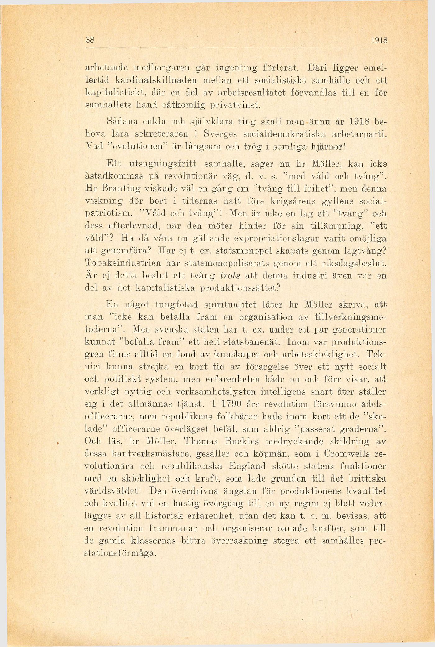 Ett utsugningsfritt samhälle, säger nu hr Möller, kan icke